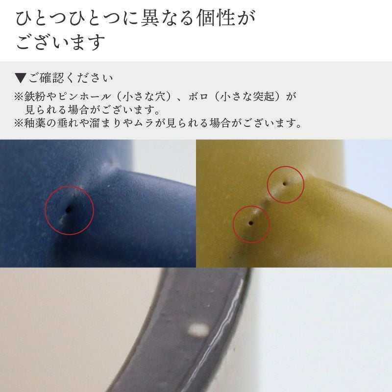 | 注意事項 | ※サイズは全て外寸になります。 ※サイズ・重さなどは商品により誤差があります。 ご注意 ※鉄粉やピンホール(小さな穴)、ボロ(小さな突起)が見られる場合がございます。 ※釉薬の垂れや溜まりやムラが見られる場合がございます。 ※お客様のお使いのモニター設定、お部屋の照明等により実際の商品と色味が異なって見える場合がございます。 ※画像に含まれる小物は使用イメージのために使用しています。 ※不明な点がございましたら、お気軽にお問い合わせ下さい。 |