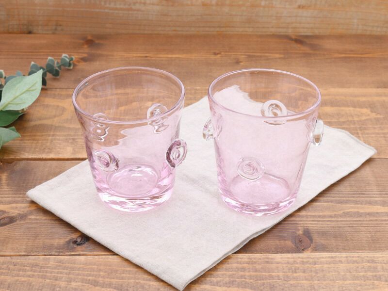 手吹きの手作り感が味わい深く、ピンク色でかわいい印象のガラス製グラスです。 形に個性があるため、いくつかそろえて並べてもおしゃれ。 ビアグラス・ジュースやお水などのコップにぴったり。 普段使い・おもてなし食器・業務用食器など様々なシーンで活用いただけます。