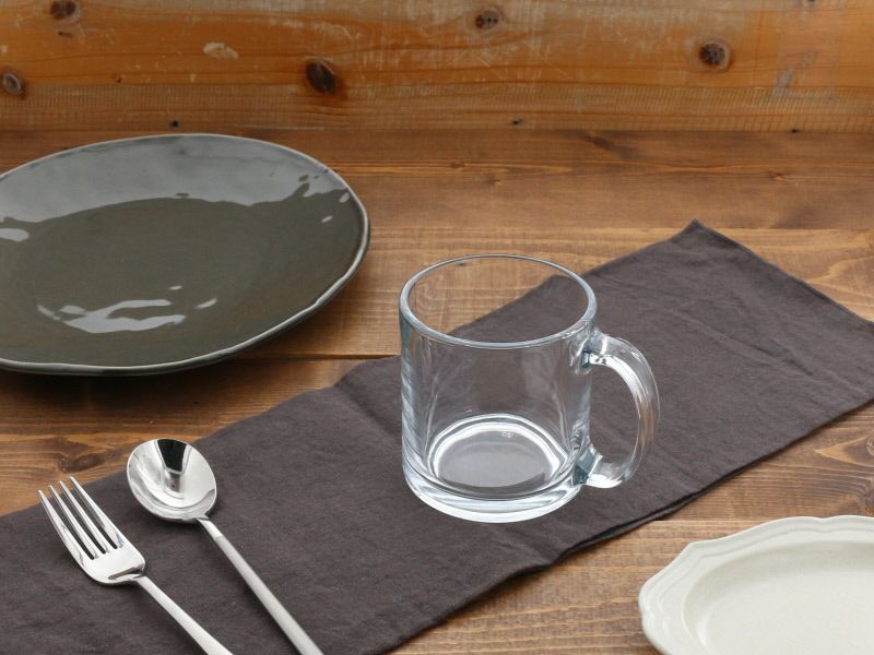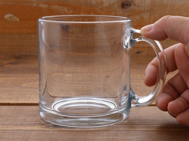 ぽってり厚みがあり、しっかりとした作りのガラス製のマグカップ。 シンプルでオシャレなグラスコップです。 ジュースやアイスコーヒー、ビアマグとしてもぴったり。