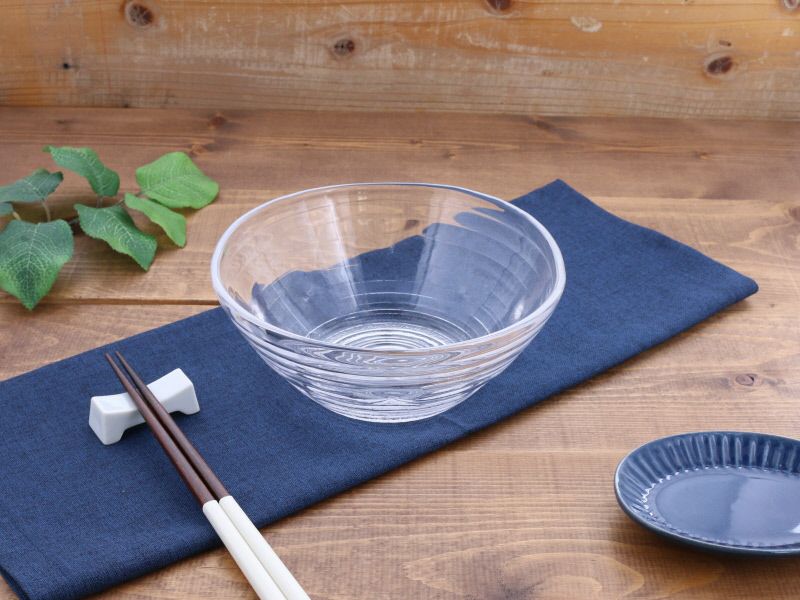 オールシーズン使えるガラス製ボウル。 ガラスの器は食材を色鮮やかに見せてくれます。 シンプルなデザインで様々な器と組み合わせがしやすく、食卓が明るい印象に。 サラダボウルやおかずの盛り鉢、夏は冷製パスタやそうめんなど麺鉢にもお使いいただけます。