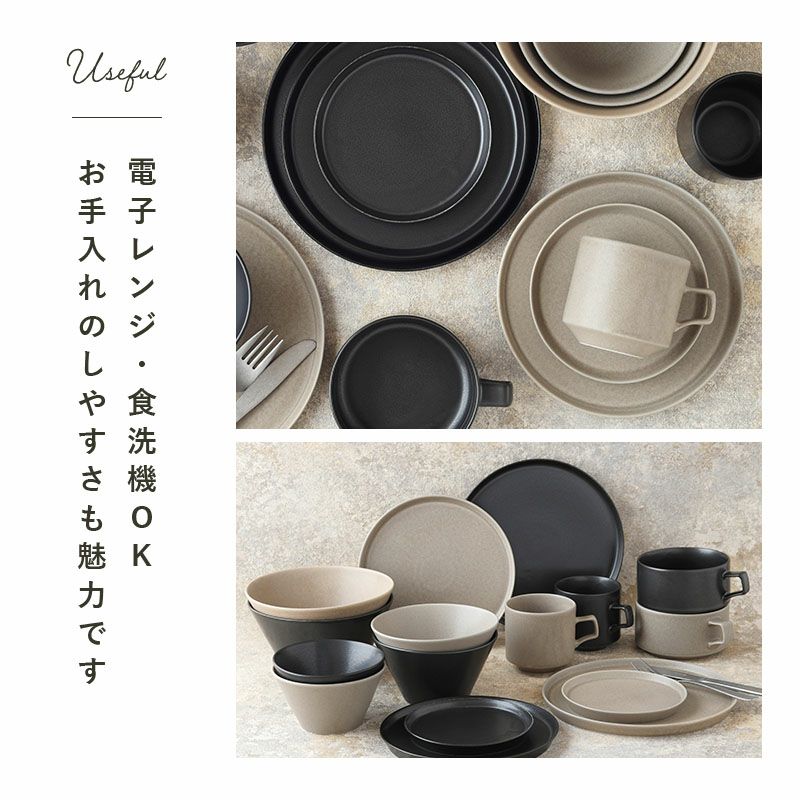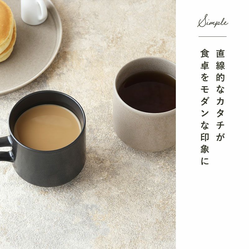 人気のMINO_worksシリーズに新色オリジナルカラーの、黒マットとグレージュが新登場! 約340ccとたっぷり入るコーヒーカップ。 その他、ティーカップ、スープカップ、日本茶をたっぷり注いで、大きめの湯のみとしても寒い時期に重宝します。 気軽におしゃれなテーブルコーディネートが楽しめる食器シリーズです。