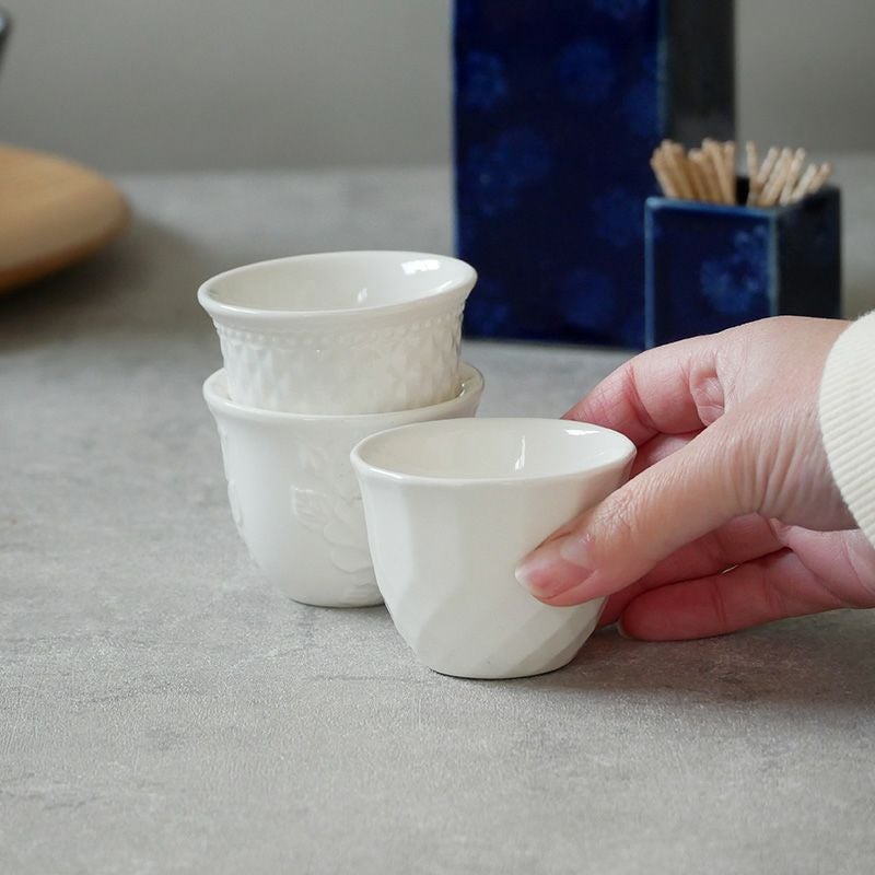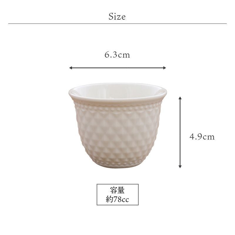 ディップソースなどの調味料や、香物の器としてぴったりなミニカップです。 ワンプレートのドレッシングやソース入れにも使えます。 ナッツなどのおつまみやキムチなどのお漬物などにも丁度良いミニサイズ食器。 日本酒を楽しむ、シンプルな酒器としてもOK。 すっきりとした風合いが、和洋中どんなシーンにも似合います。 おもてなし食器としてはもちろん、普段の食器としてもおすすめです。