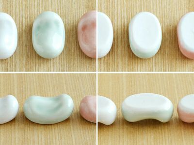 むにっとしたフォルムの少し小ぶりな可愛いそら豆型の箸置きです。全四色の中の、こちらは優しい色合いのグリーン。形に合わせて釉薬の濃淡が変わる様子は和食器ならではの風情を感じます。ころんと転がってしまいそうな見た目ですが、テーブルとの接地面は広めなので安定感は抜群!お子様のスプーンやフォークを置く用途にもオススメです。