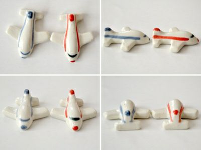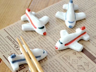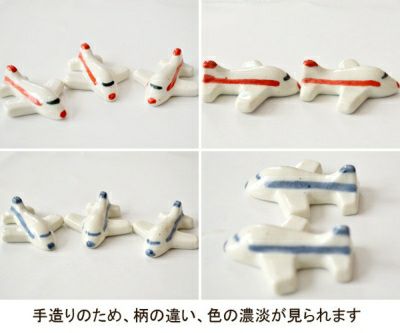 こちらは手造り感溢れる飛行機型の箸置き。 一つ一つ色の濃淡などに違いがあり、手造りの温かみや素朴な雰囲気を感じさせます。 飛行機の形で、色は赤と青。お箸が滑り落ちることなく置くことができます。 お子様用の箸置きとしてもおすすめです。