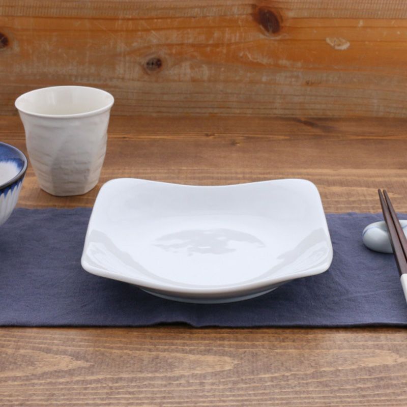 深さのある粉引の角皿。 飽きのこないシンプルなデザインは和洋中の料理にもしっくり馴染んでくれて、毎日の食卓で重宝します。 こちらは中皿サイズで汁気のあるおかずの副菜皿、サラダ皿、取り皿におすすめ。