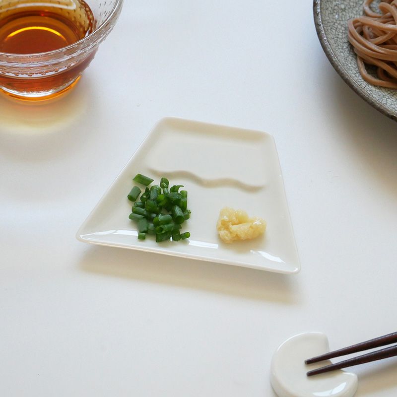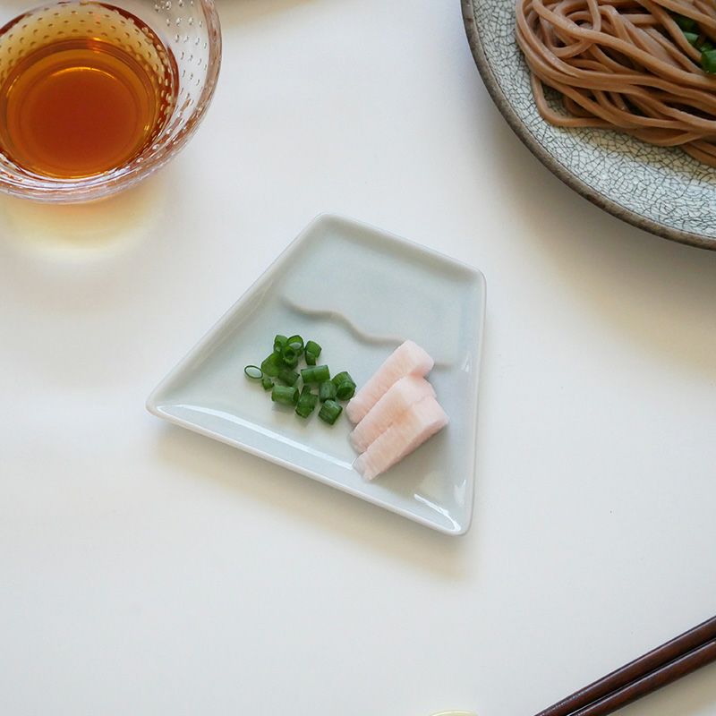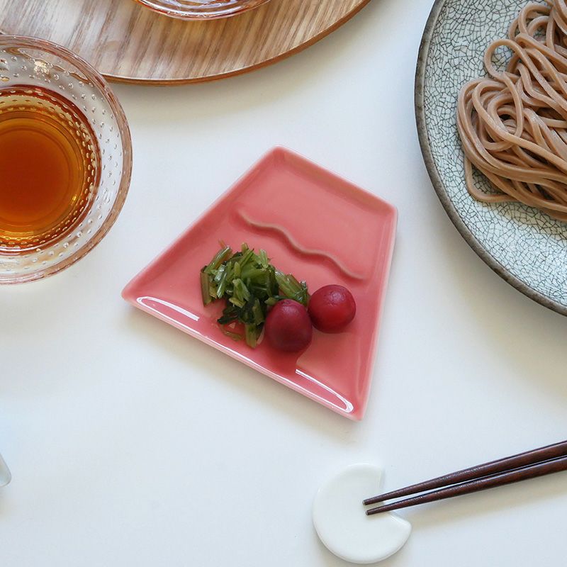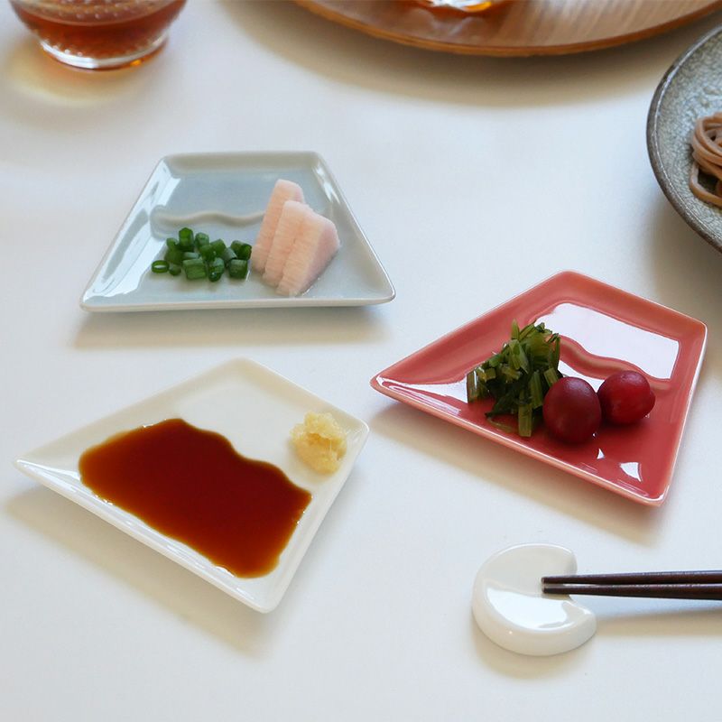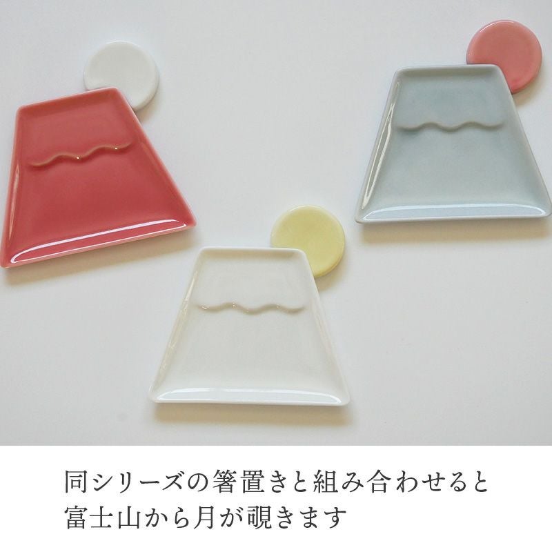 食卓を華やかに彩ってくれる、富士山型の小皿です。 同シリーズの月型はし置き「tsuki」と合わせて揃えると、おもてなしやパーティーシーンのテーブルも華やかに。 縁起物の富士山は贈り物や、海外の方へのお土産としても喜ばれます。 11cmの小皿は、醤油皿、薬味皿、フルーツや和菓子をのせる菓子皿としてお使いいただけます。