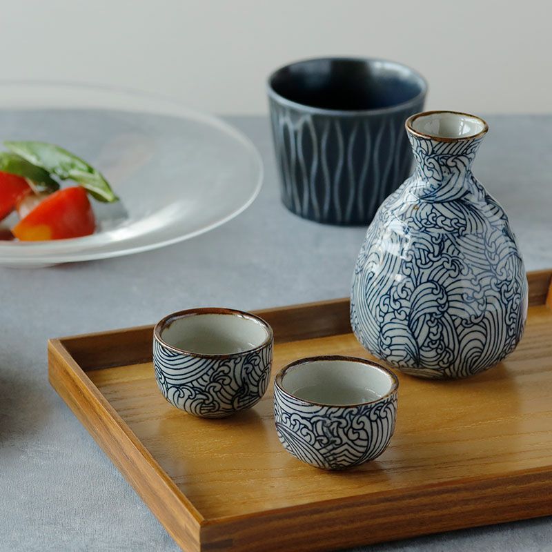 白地に落ち着いた青で力強く波文が描かれた、シンプルな色使いのモダンなとっくり。 こちらは1合サイズで一人でお酒を楽しむのにぴったりなサイズです。 同シリーズのぐい呑みと合わせて使えば、普段の晩酌からおもてなしまで使えるおしゃれな酒器です。