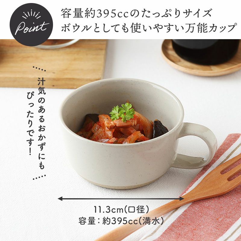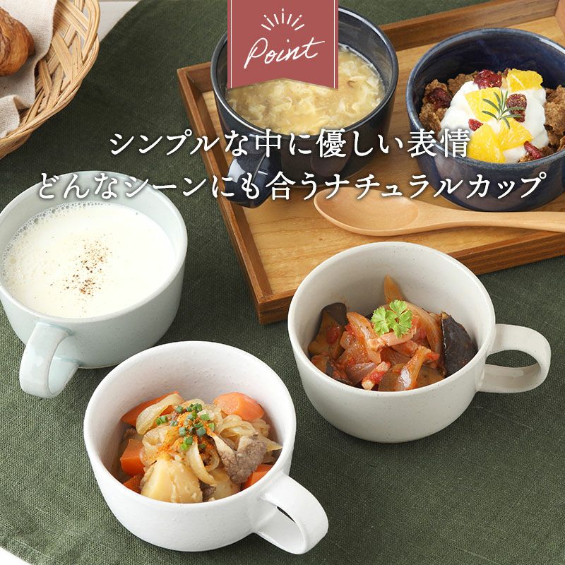 シンプルで生活に馴染むスープカップ。 デザートカップやスープカップ、ちょっとしたおかずの小鉢など日常の利用にピッタリ。 他にもサラダカップ、デザートカップ、ヨーグルトボウル、アイスカップなどにも使えます。 色違いで揃えても同色で揃えてもまとまりのある食器です。