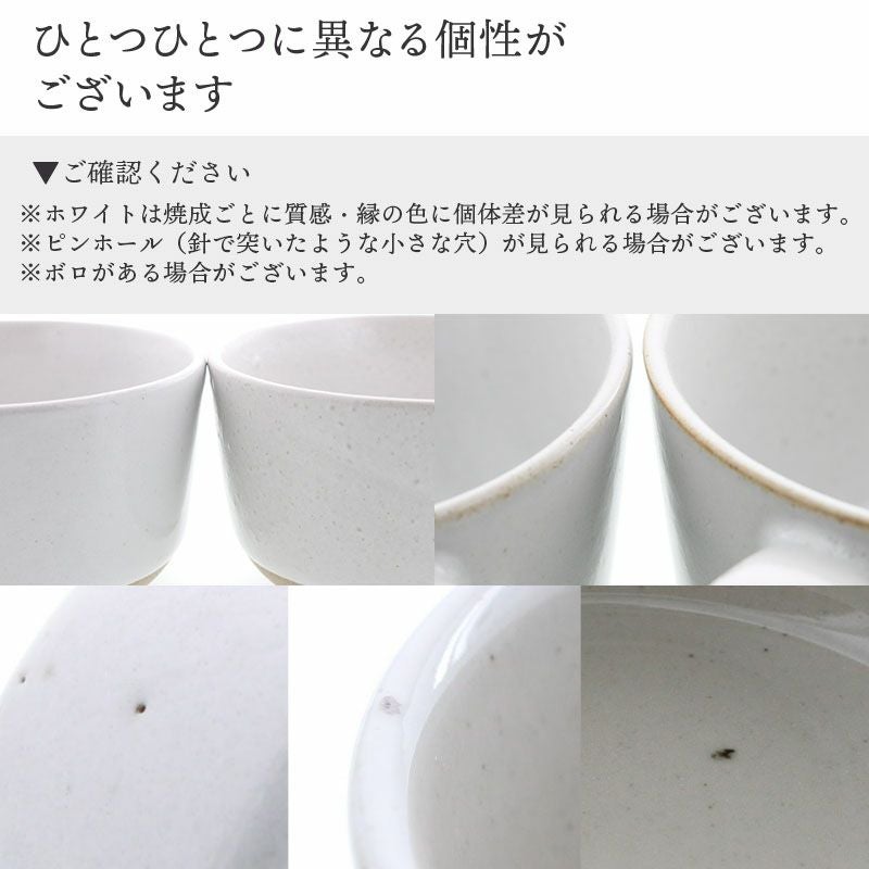 | 注意事項 | ※サイズは全て外寸になります。 ※サイズ・重さなどは商品により誤差があります。 ご注意 ※ピンホール(針で突いたような小さな穴)が見られる場合がございます。 ※ホワイトは焼成ごとに質感・縁の色に個体差が見られる場合がございます。 ※ボロがある場合がございます。 ※釉薬の垂れ・濃淡・剥げ・ムラ・溜まり等が見られる場合がございます。 ※形に多少の歪みがございますが商品の特性としてご理解、ご了承をお願い致します。 ※お客様のお使いのモニター設定、お部屋の照明等により実際の商品と色味が異なって見える場合がございます。 ※画像に含まれる小物は使用イメージのために使用しています。 ※不明な点がございましたら、お気軽にお問い合わせ下さい。 |