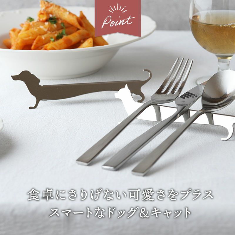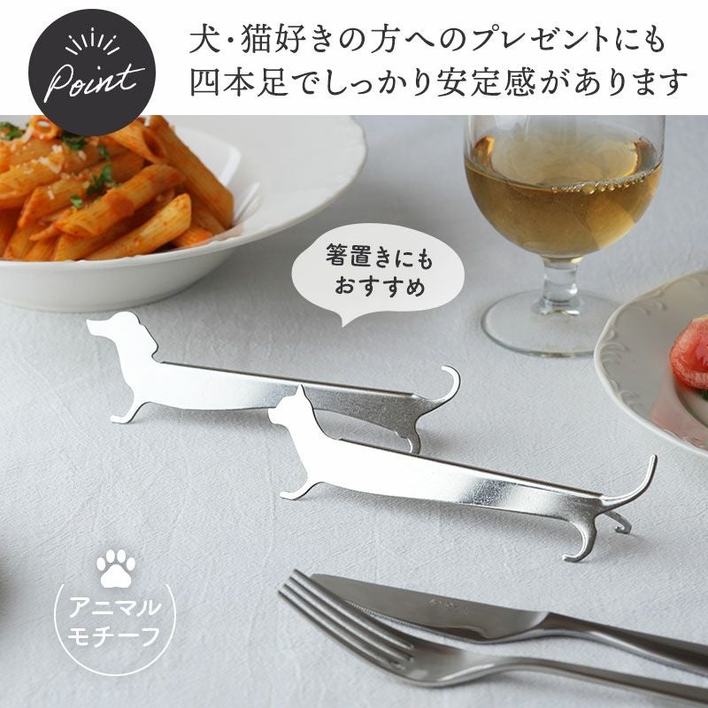 動物モチーフでステンレス製のカトラリーレストは、食卓のポイントになってくれそうな愛らしいデザイン。 洋食用にフォークやスプーンはもちろん、箸置きとしても◎ 和食・洋食問わず幅広いシーンでお使いいただけますので、組み合わせアレンジをお楽しみいただけます。 おもてなし用で複数揃えておくこともおすすめ。