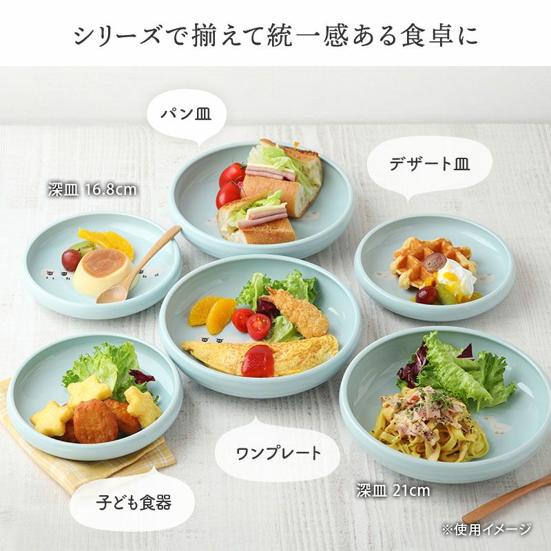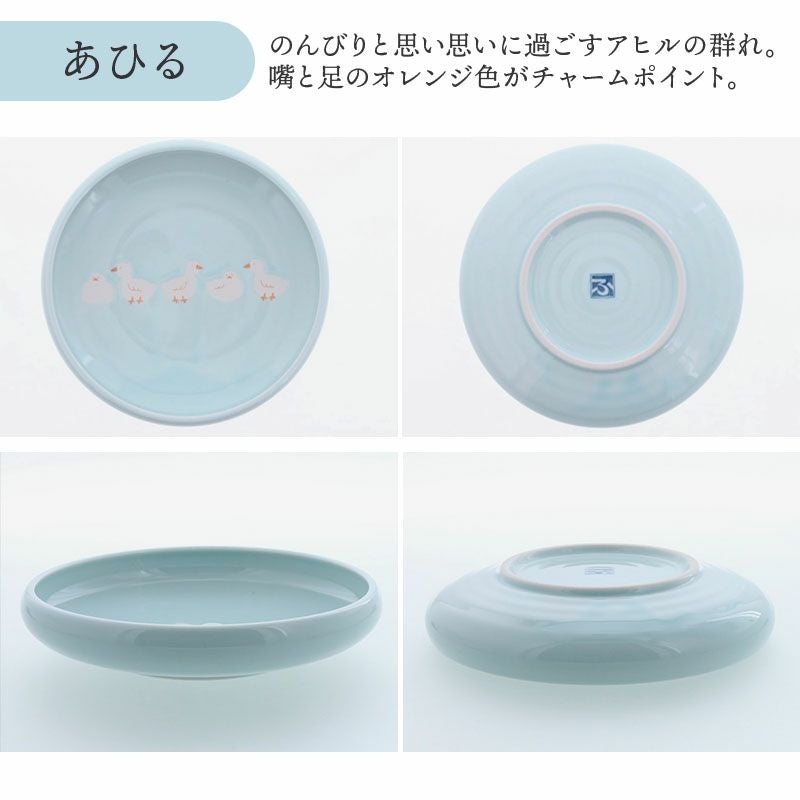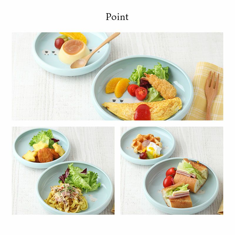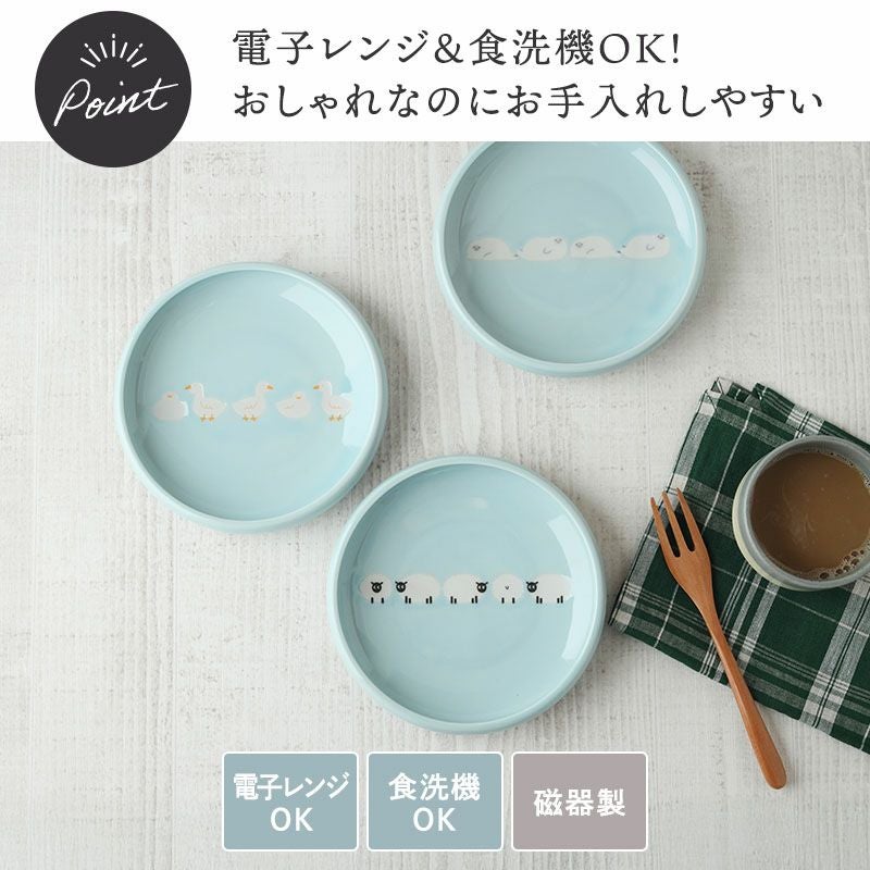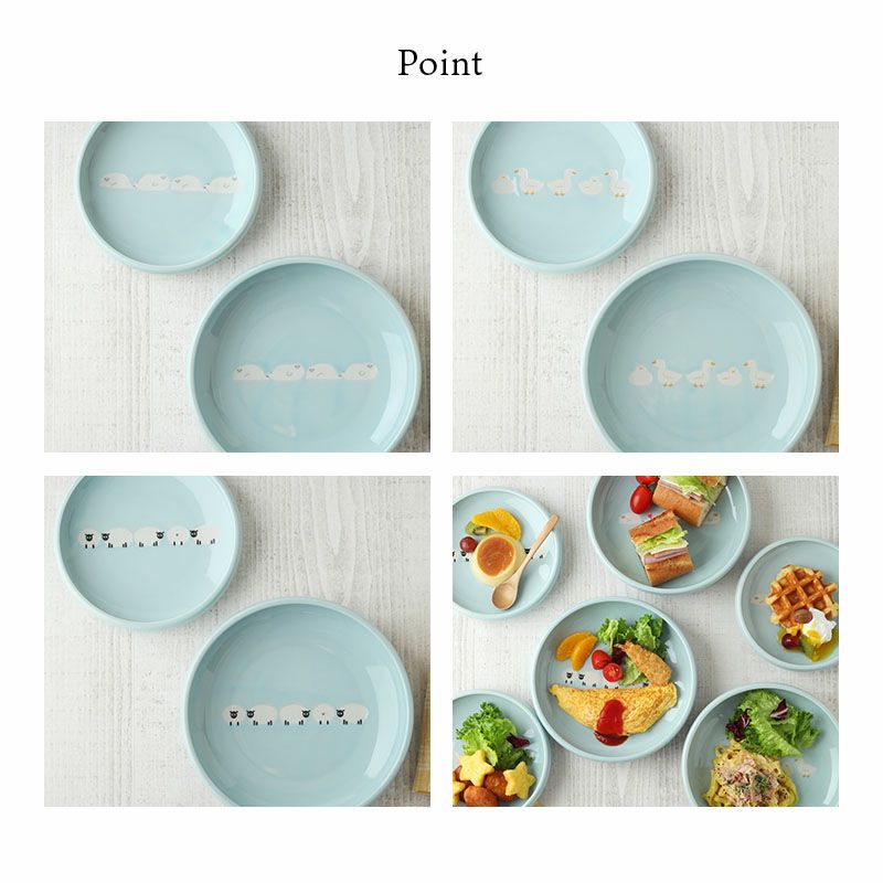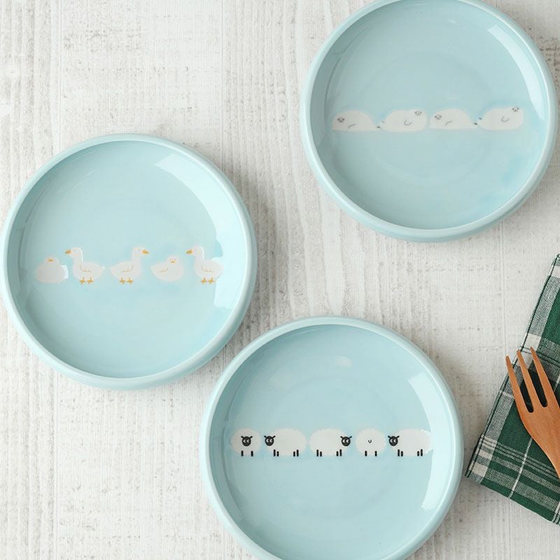 やさしいみずいろのお皿に、ゆるっとかわいい動物たち。