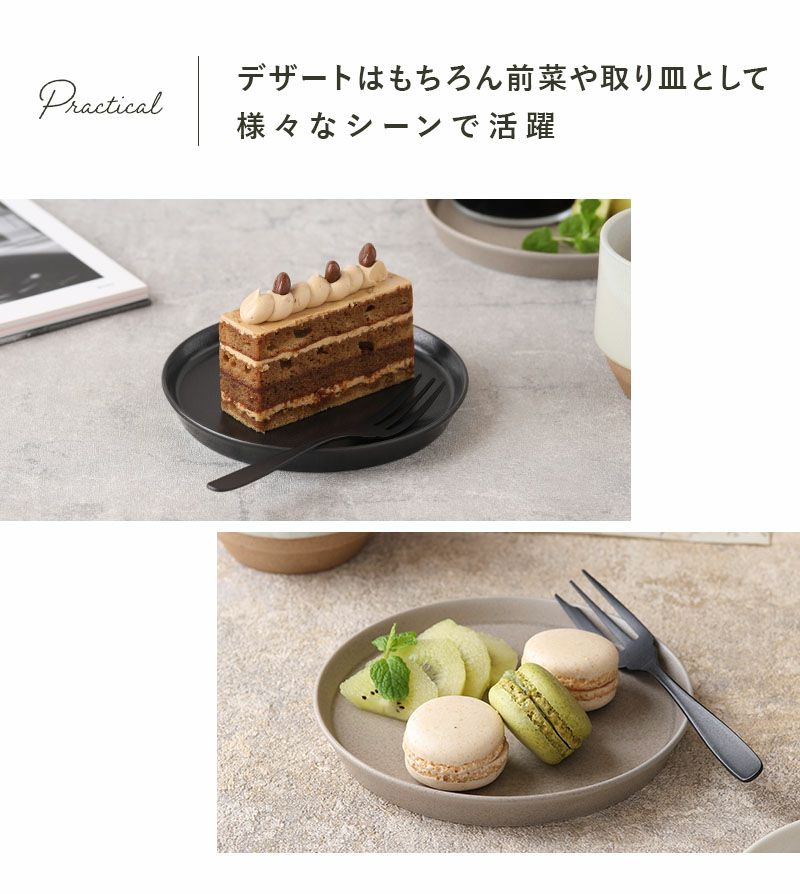 シンプルで洗練されたデザインと落ち着いたカラーがどんなテイストの食卓にも馴染みます。 14.5cmのプレート。デザート皿、副菜皿、取り皿として重宝します。 パンや焼き菓子がパっと映えるカラーとデザイン。 気軽におしゃれなテーブルコーディネートが楽しめる食器シリーズです。
