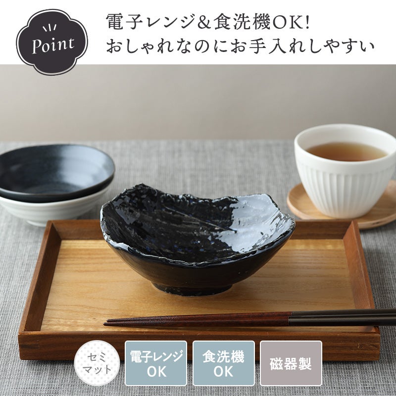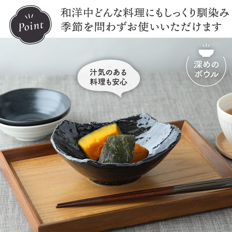 食卓に風格を添える、和モダンな焼物皿です。 おかず小鉢、サラダボウル、デザートボウル、ヨーグルトボウルなど多用途に使えます。 使い勝手が良く、毎日の食卓に欠かせません。 力強いフォルムと、趣ある釉薬の表情が魅力の器です。
