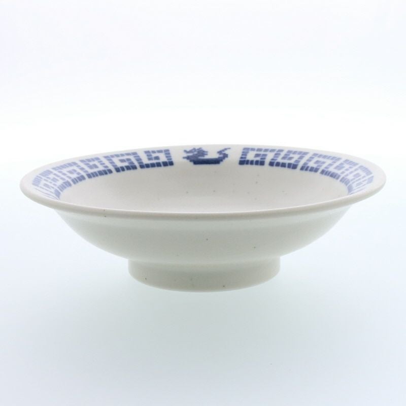 ドット絵風の龍と雷紋が印象的な、中華風の高台皿。 18.5cmサイズで取り皿や副菜、点心の他、デザートやフルーツの盛り付けにもぴったり。 高台付きで見た目にメリハリがあり、食卓に立体感をプラス。 レトロでユニークなデザインが、日常の食事をちょっと特別にしてくれます。