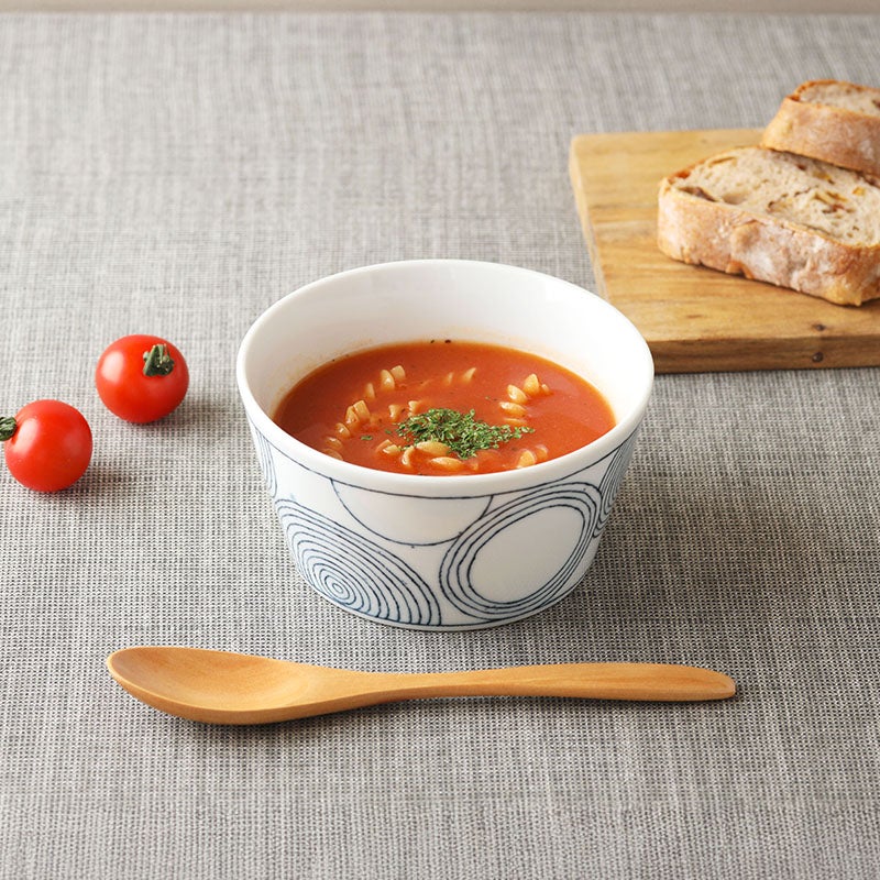 渦を巻くような柔らかなラインが印象的な、糸つむぎシリーズの中鉢。 13cmサイズは、副菜、煮物、サラダ、フルーツ、デザートなどのほか、スープなどにも幅広く大活躍します。 シンプルで素朴な風合いがあり、ゆるっとしたラインが食卓にあたたかみを添える器は普段使いにもおもてなしにもぴったりです。 同シリーズで揃えて使えば統一感のある食卓コーディネートも楽しめます。