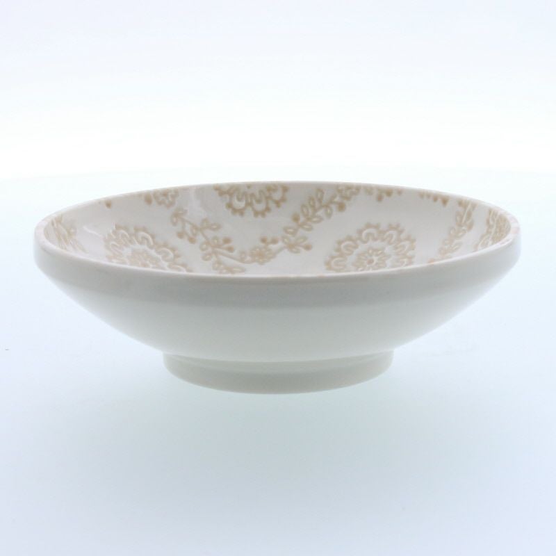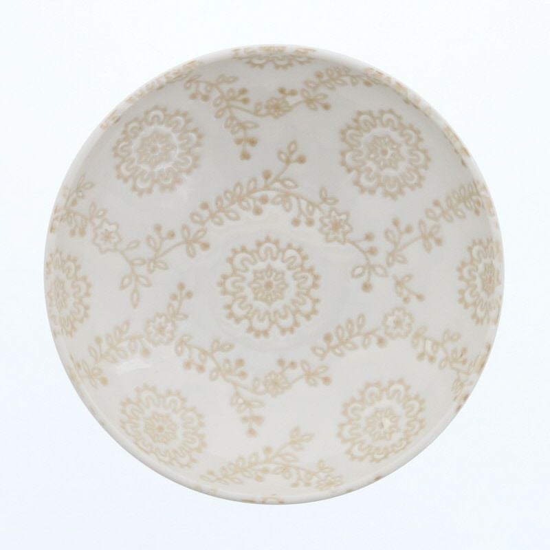 優しい色味とレースの柄が食卓をほっこりとさせるサラダボウル。 約470ccの容量が入る大きめサイズなので、汁気のある料理にもおすすめ。 中鉢サイズはサラダ以外にも副菜鉢やシチューボウル、フルーツボウルなどいろいろな用途で大活躍。 同シリーズで揃えて統一感のある食卓にするのもおすすめです。