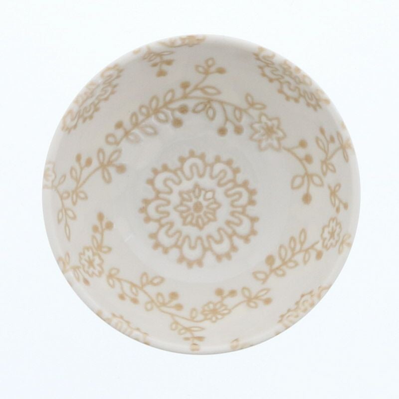 優しい色味とレースの柄が食卓をほっこりとさせる小鉢。 9cmのサイズ感がちょうど良く、幅広い料理に使えます。 菓子皿、おつまみ、小さなおかずの器に最適。 小ぶりな大きさを利用してお皿の上に乗せれば、カフェ風のワンプレート料理にも最適。