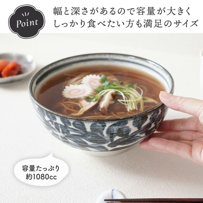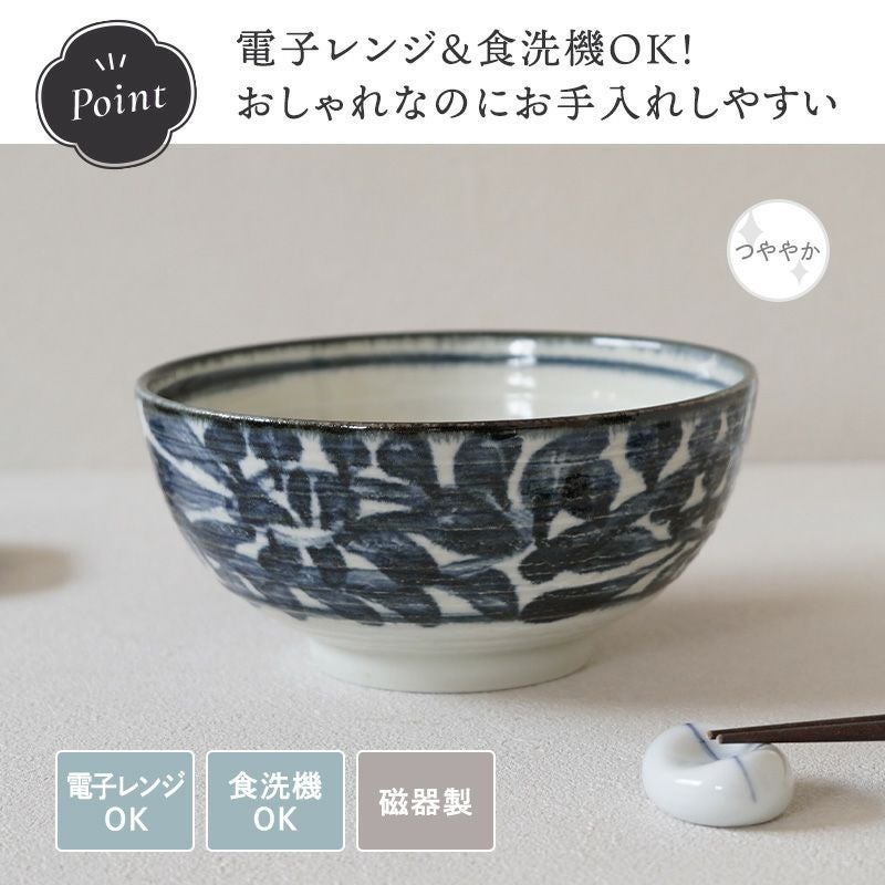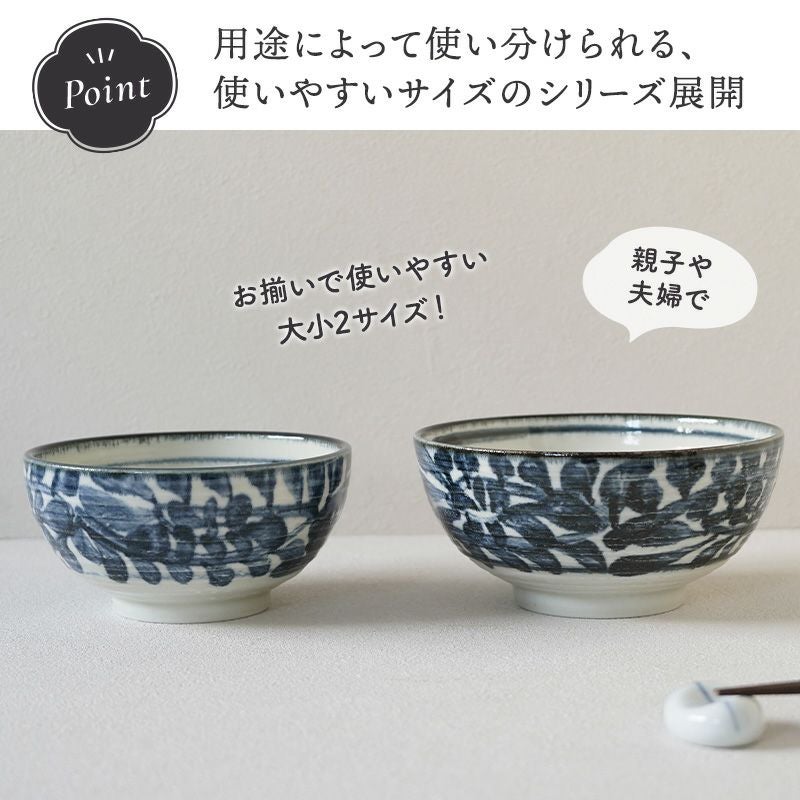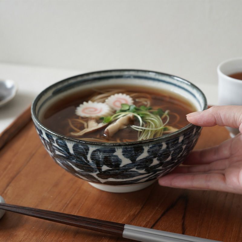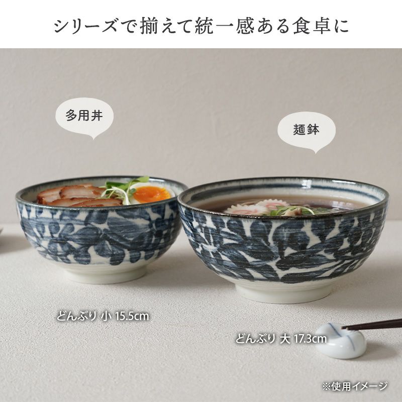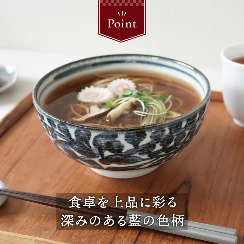 藍色の唐草模様が目を惹くどんぶり。 丼ものメニューや、麺類など家庭の定番メニューに使えます。 大鉢や盛り鉢としてもおすすめ。 大きすぎず、ほどよいサイズ感も魅力です。