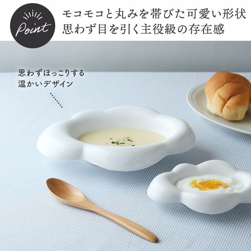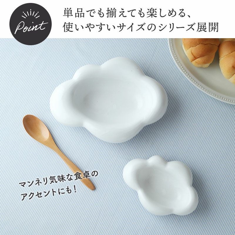 ころんと可愛い雲型プレートです。 サラダ皿やデザートプレート等、多用途に使える便利なサイズのお皿です。 カフェ風食器としておしゃれに使うのもおすすめ。 日々の食卓がほっこり楽しくなりそうな器です♪