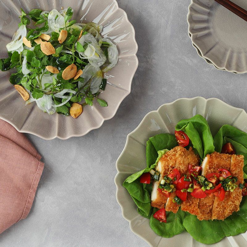 和食や洋食、アジアン料理にも自然と馴染み、センスよく見せてくれるおしゃれな洋食器です。 こちらはディナープレートとして、メインディッシュに最適なサイズ。 メイン料理だけでなく、朝食やランチにカフェ風ワンプレートの盛り付け、パスタ皿やおかずの盛り皿など大活躍。 色違いで揃えると統一感が出て雰囲気UP間違いなしです。