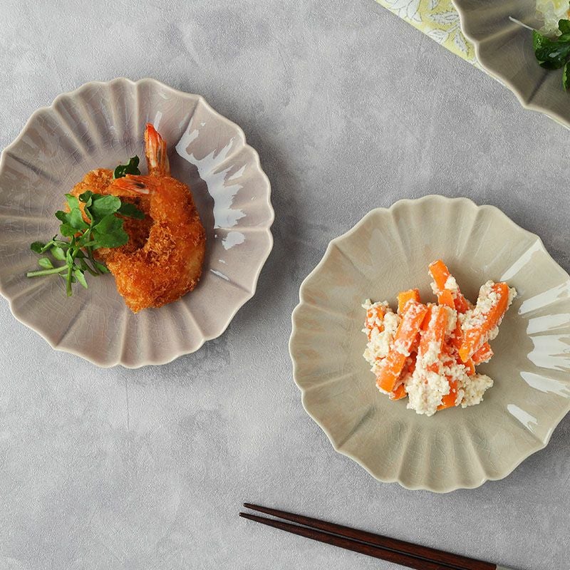ニュアンスカラーが美しい蓮モチーフのプレート。 和食や洋食、アジアン料理にも自然と馴染み、センスよく見せてくれるおしゃれな洋食器です。 こちらは取り皿や前菜皿、副菜皿にぴったり。 非常に使い勝手の良い便利なサイズのお皿です。