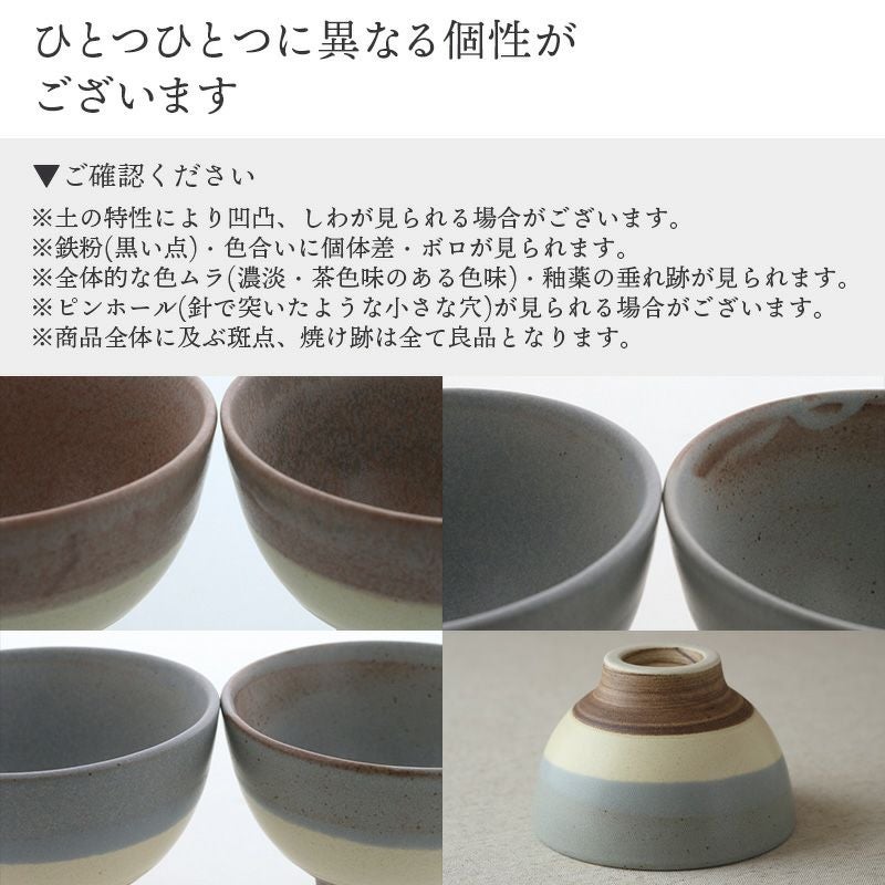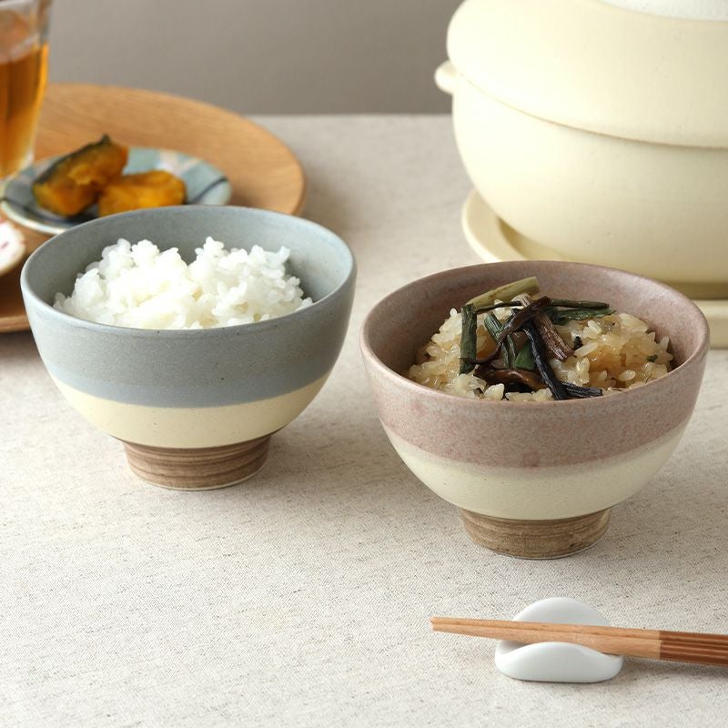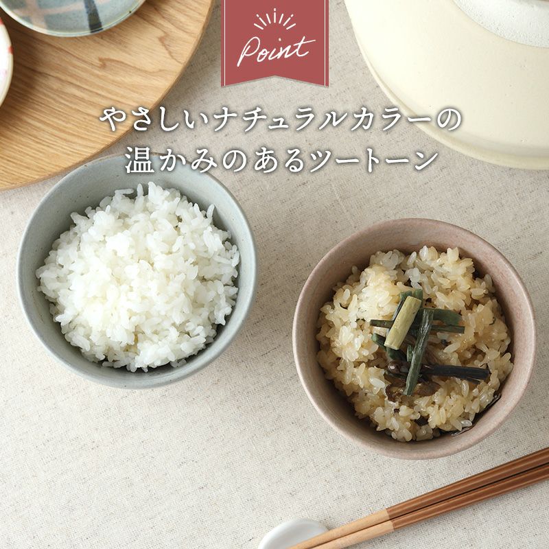 やさしいツートーンカラーのお茶碗です。 ころんとしたかわいらしい形状で、毎日の食卓をほっこりと癒してくれます。 ご飯茶碗以外にも副菜鉢、サラダボウル、デザートボウル、スープボウルなど小鉢や汁椀としても使えます。 ペアで揃えてお使いいただくのもおすすめです。