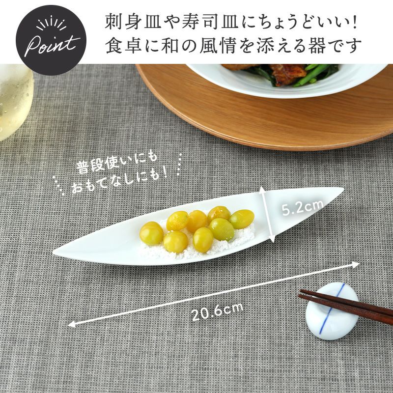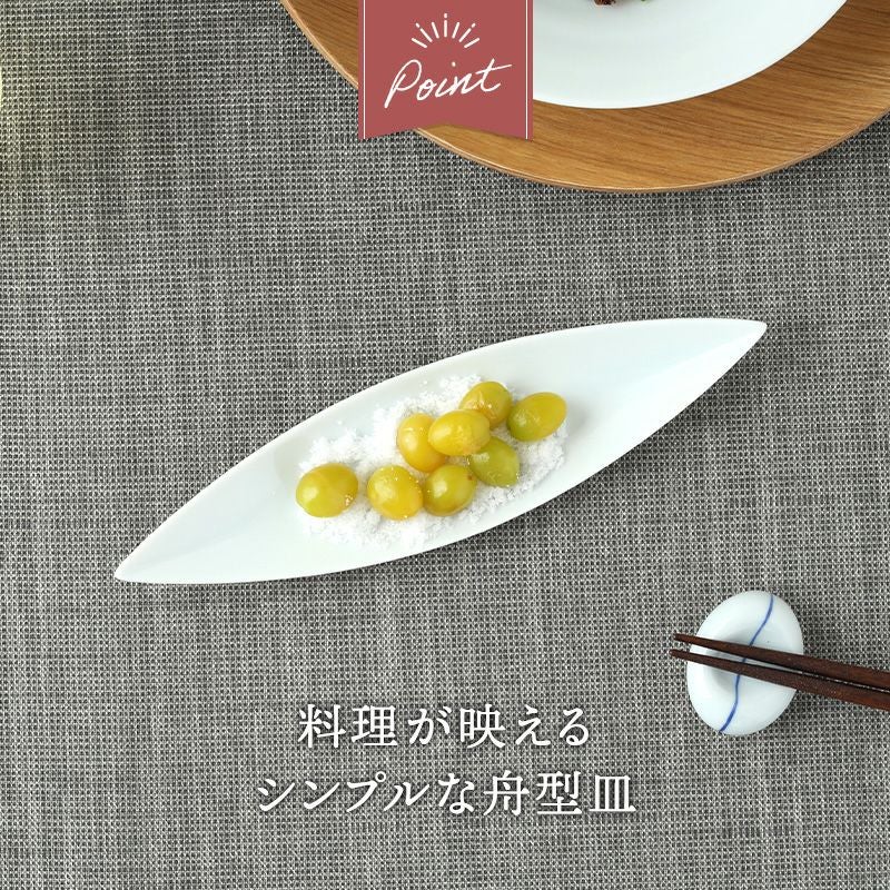 食卓に和の風情を添える、舟型デザインの皿。 刺身皿、寿司皿はもちろん、たまご焼き、おかずの盛り皿にも最適です。 普段使いはもちろん、おもてなし食器としてもおすすめ。 和カフェスタイルにもよく合う器です。