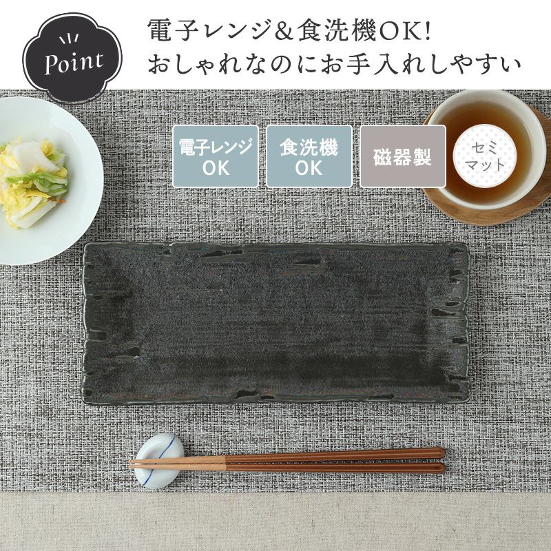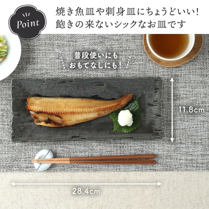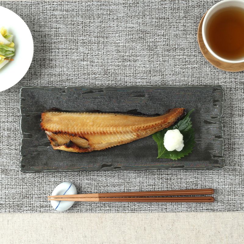 和・洋問わず料理が映える角皿。 こちらのサイズの角皿は焼物皿として定番のサイズ。焼き魚皿、刺身皿、寿司皿はもちろん、たまご焼き、おかずの盛り皿にも最適です。 おかずだけでなく、和菓子などをおしゃれに盛り付けたり、ミニケーキを並べたり多用途に使える便利なサイズのお皿です。 食卓でもデッドスペースになりにくい、スマートなうつわです。