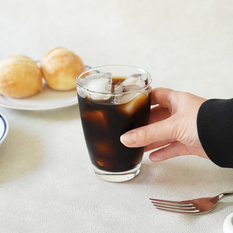 日本製のつややかなガラスタンブラー。 アイスティーやアイスコーヒー、ジュース、お茶など日常使いにぴったり。 フルーツティーやハーブティーを淹れると緑や黄色が色鮮やかに透けて見えて、見た目にも楽しくティータイムが過ごせます。 食洗機にかけられるのも嬉しいポイントです。