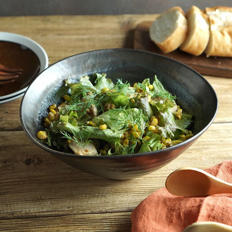 鉄結晶はモダンな印象で和食をはじめ、洋食、アジアン料理などいろいろな料理に対応してくれます。煮物鉢、サラダボウル、副菜の盛鉢にぴったり。