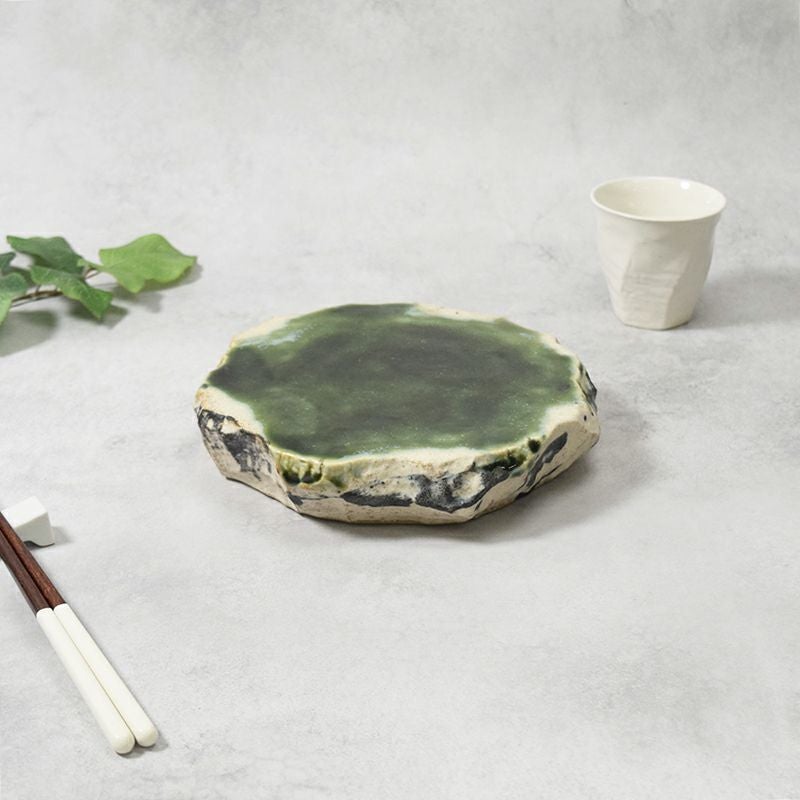 奥深い濃厚な色味が上品なロックプレート。 約21cmの中皿は、前菜の盛り付けはもちろん、取り皿やデザート皿としても使いやすいサイズ感で日常使いにぴったりです。 そのほか、一人分のパスタや朝食のパン皿に最適なサイズ。 普段使いからおもてなしまで、日々のお料理を彩る主役のお皿になってくれます。