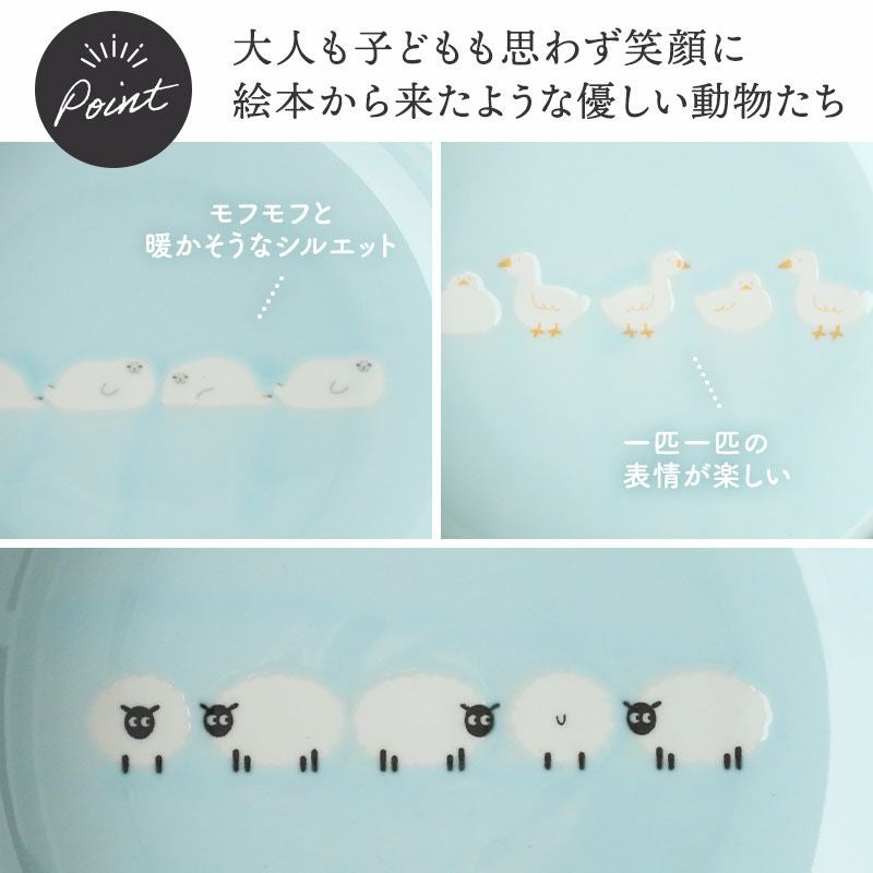 あひる・ひつじ・あざらしのキュートなアニマル柄に癒される深皿。 小食な女性・子供用のパスタ皿、サラダ皿はもちろん、ワンプレートや盛り皿にも使える大きめサイズ。 深さがあるので煮物鉢として汁物もしっかりと盛り付けることができます。 ご飯の時間がもっと楽しく過ごせそうな食器ですね。