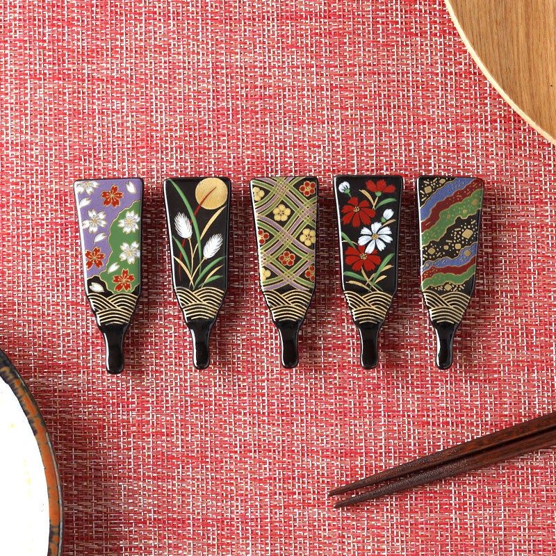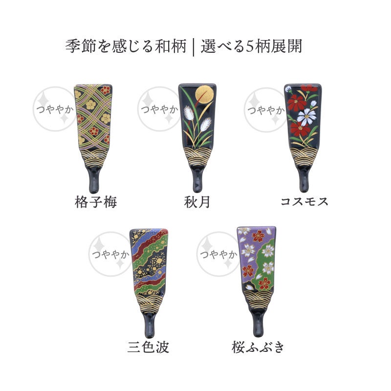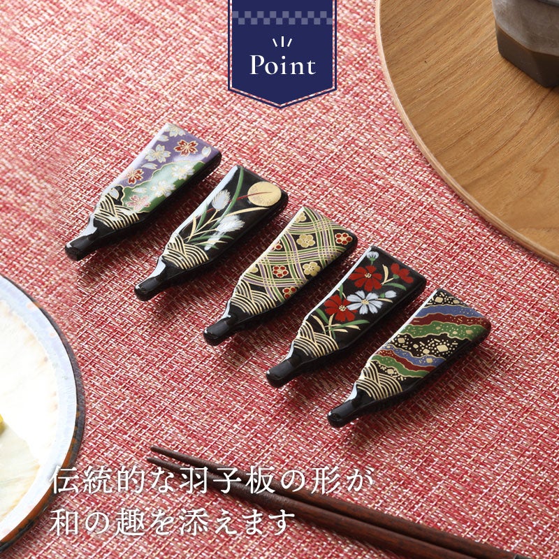 伝統的な羽子板の形をモチーフにした、華やかで上品な箸置き。 季節の草花や文様が丁寧に描かれ、食卓に彩りと和の趣を添えます。 繊細な絵柄が、料理の魅力を引き立てます。 普段使いはもちろん、特別な日やおもてなしにも最適ですよ。