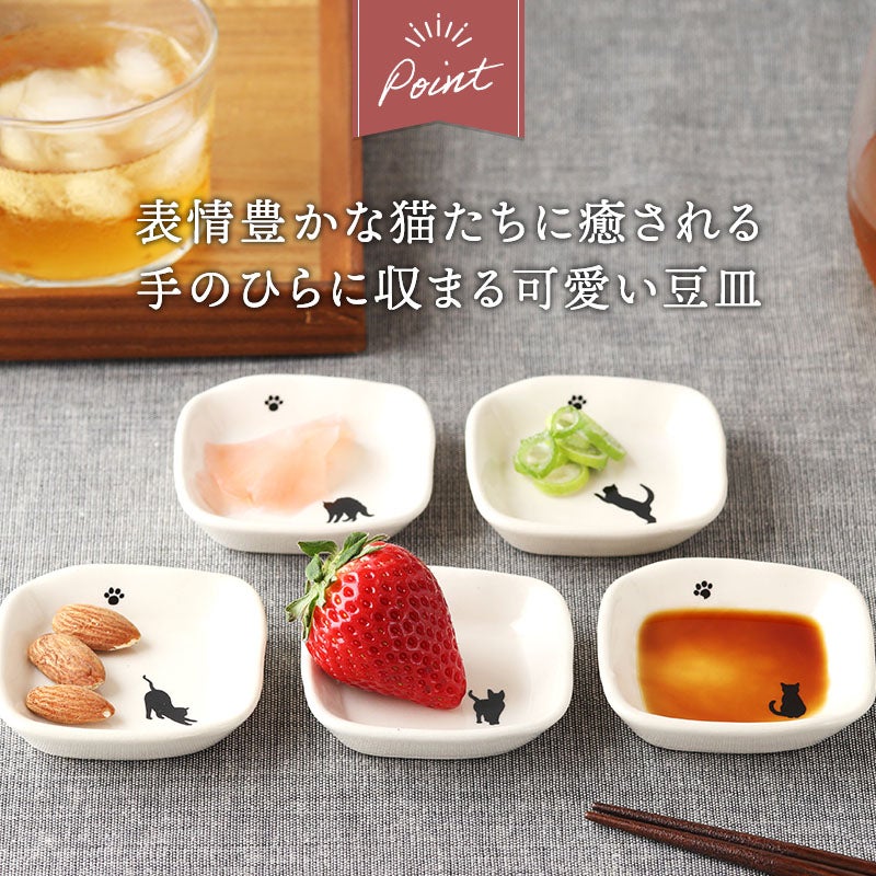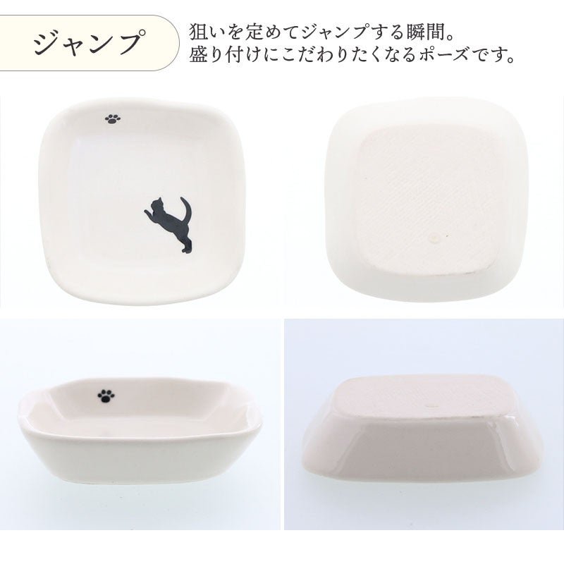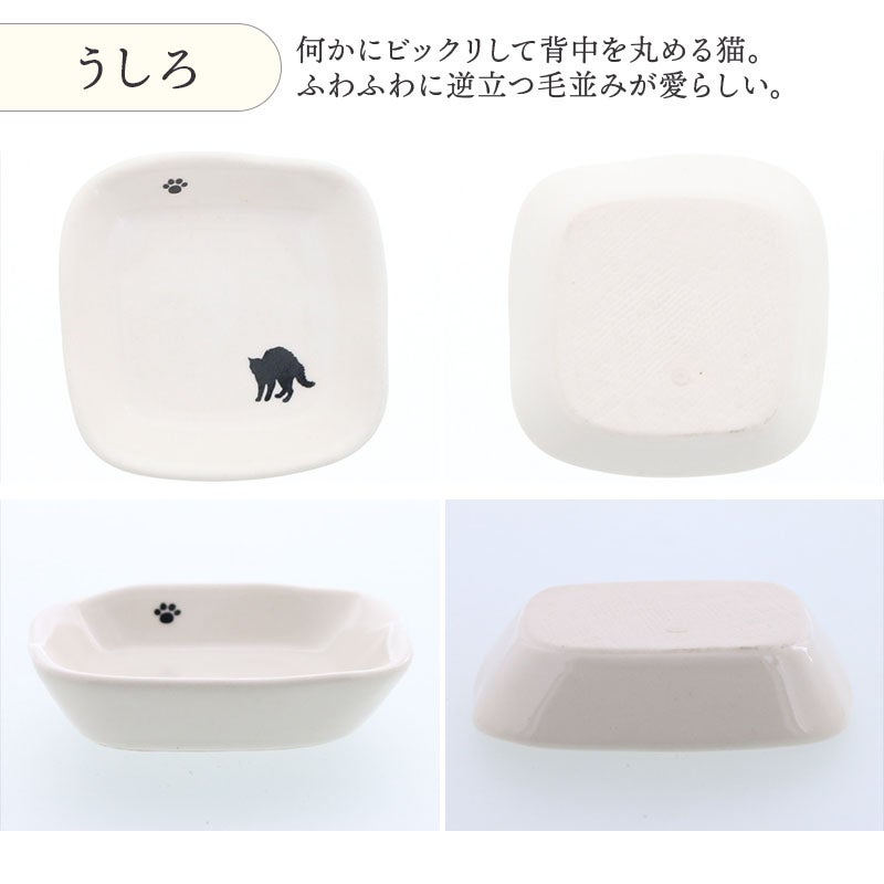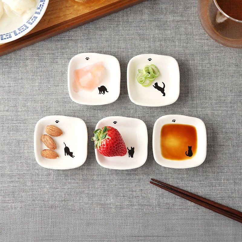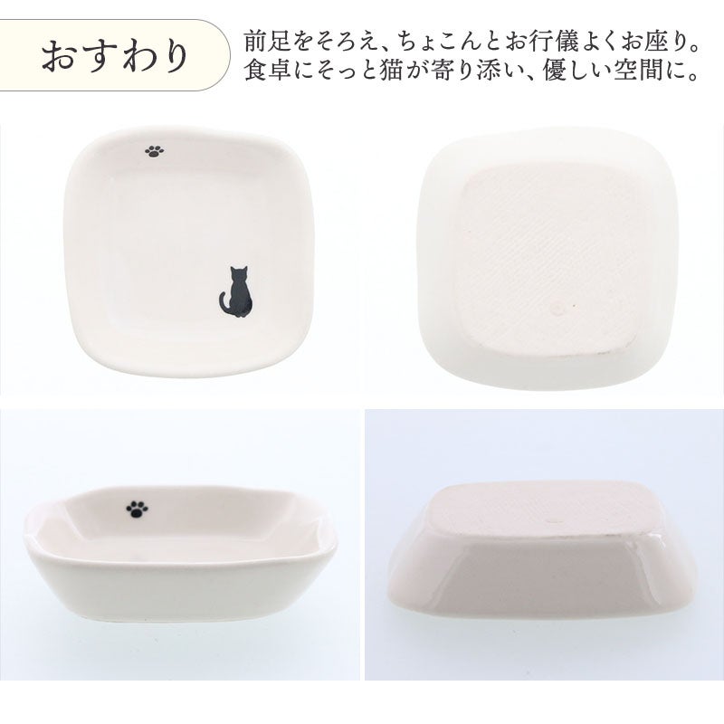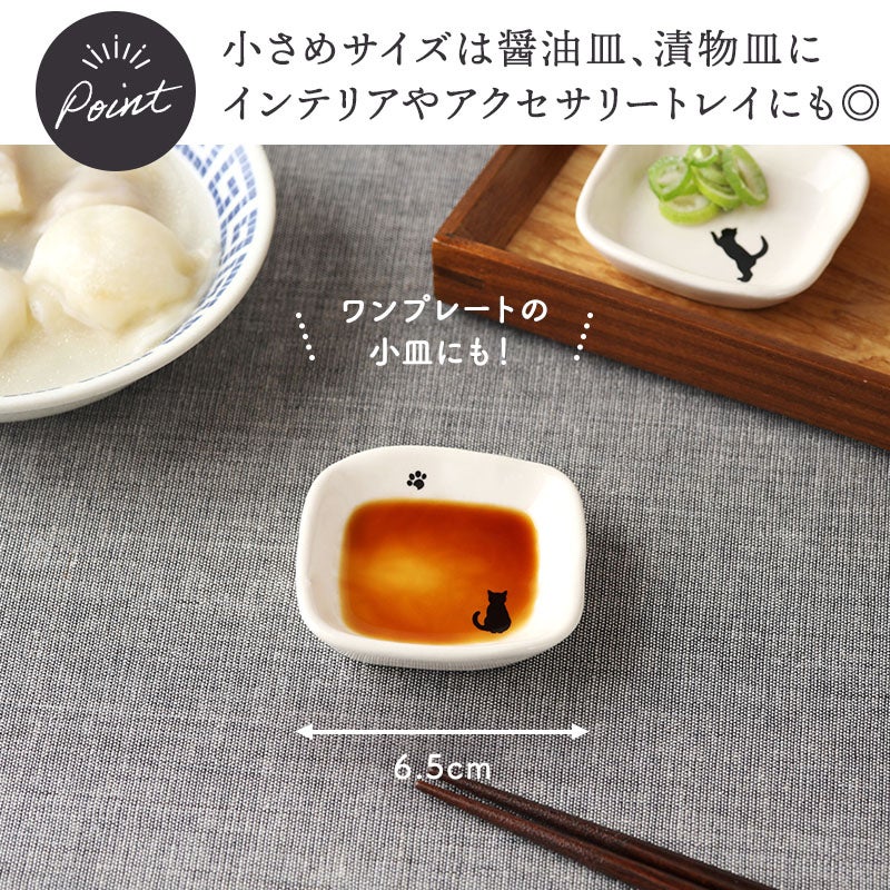 かわいい猫のシルエットが描かれた、ほっこり豆皿。 薬味やお漬物、ちょっとしたおかずにぴったりのサイズ。 食卓のアクセントとしても、インテリアとしてもおすすめです。 毎日の食卓に、さりげない癒しをプラスしてくれますよ。
