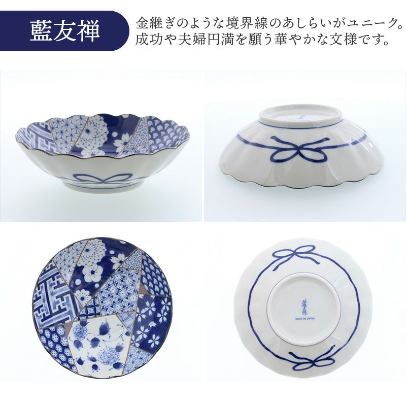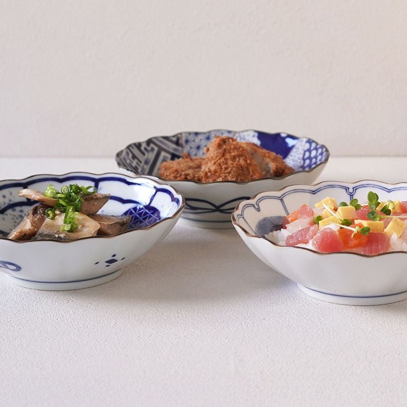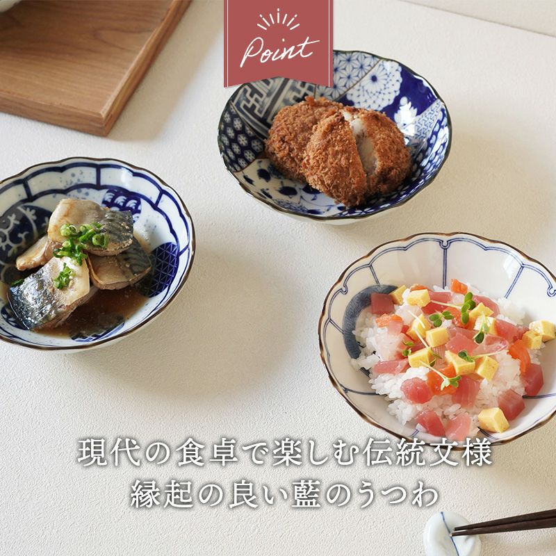 菊の花を模した縁が、料理を上品に引き立てる浅鉢です。 肉じゃがや煮浸し、冷ややっこなどの副菜はもちろん、白玉やアイス・杏仁豆腐などのデザートにもぴったり。 浅めな鉢なので汁気の少ないものを盛るのにおすすめです。 藍色の絵柄が食卓に涼やかな印象を与え、和モダンな雰囲気に!並べるだけで華やかな食卓が完成します。