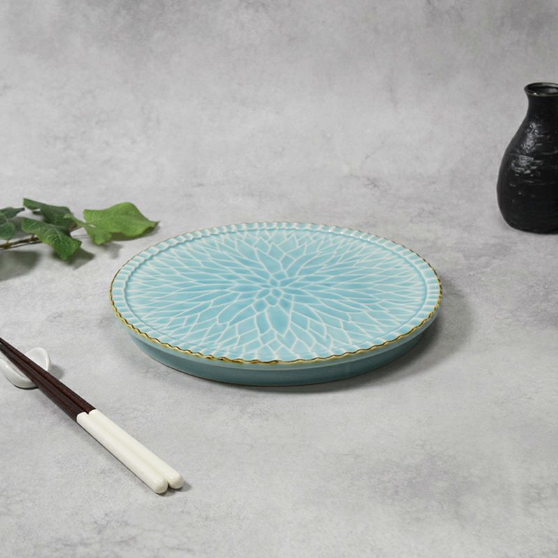 繊細な花柄と青が美しく食卓を彩る大皿。