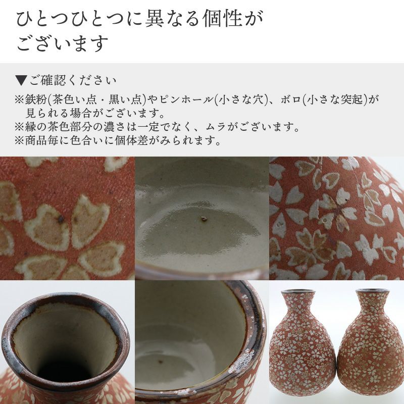 やさしい紅色に舞う桜の花模様が華やかな、酒器のギフトセット。 徳利1本・猪口2個のセットで、晩酌やおもてなしにぴったりのサイズ感です。 手になじむ丸みのあるフォルムが、和やかなひとときを演出します。 箱入りで贈り物にも最適。季節のご挨拶やお祝いの品にもおすすめです。 セット内容 徳利×1 盃×2 合計3点
