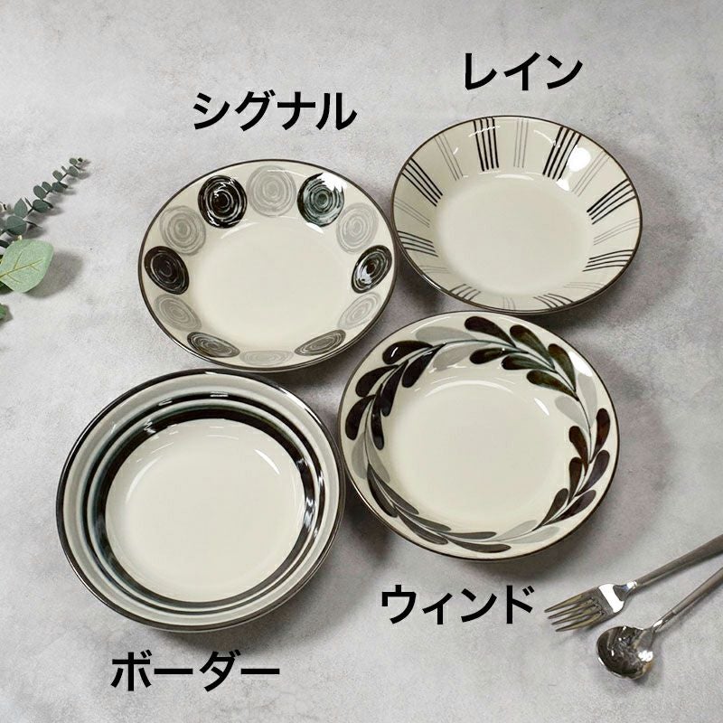 モノクロの色味がモダンな印象を与える、パスタ・カレー皿です。 使い勝手がよく幅広い用途にお使いいただける深皿は、毎日の食卓で大活躍。 和食器らしい落ち着いた風合いで、シンプルな食卓にも映えます。 柄違いで揃えれば、統一感の中にさりげないアクセントを添えられますよ。