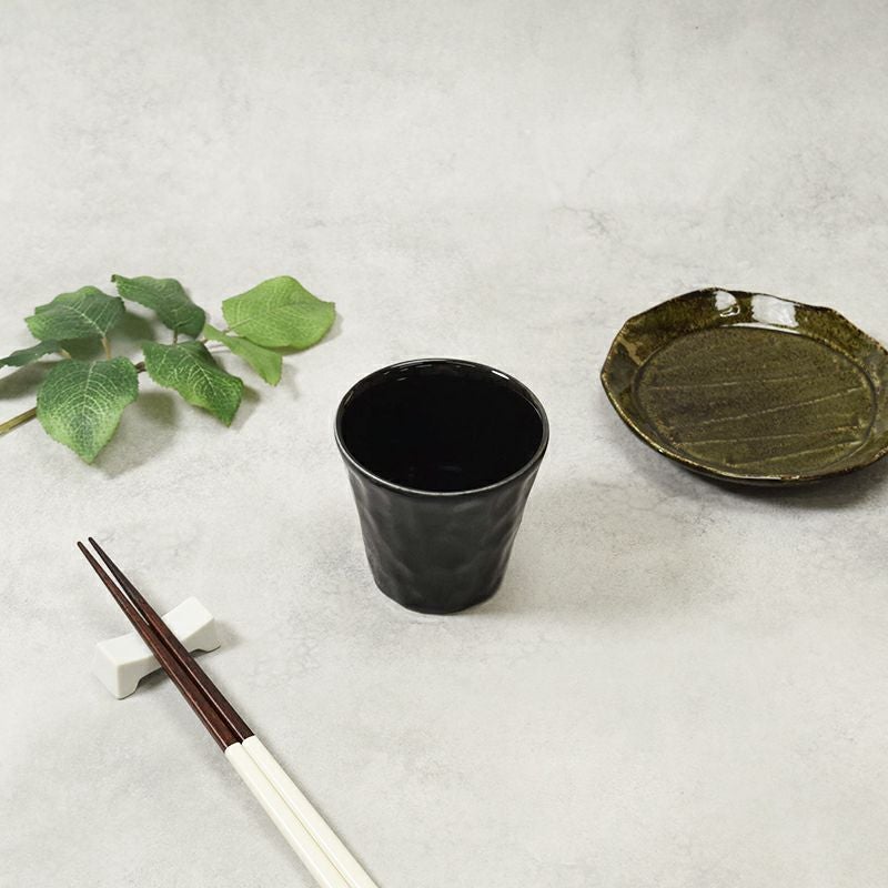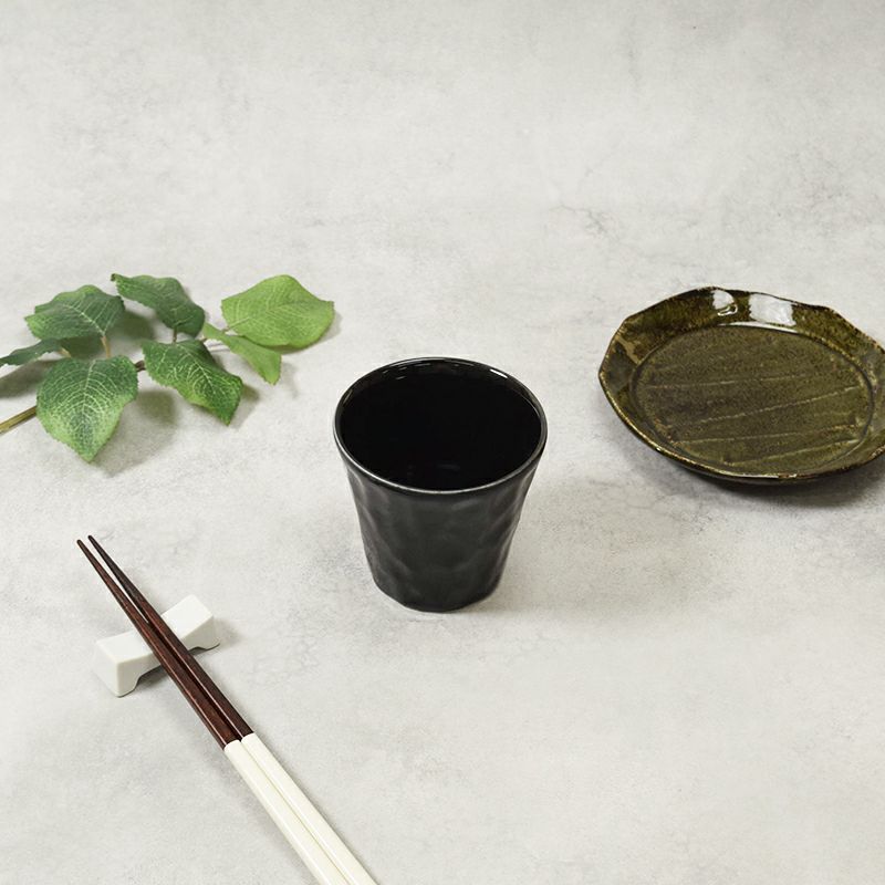 深みのある黒釉が魅力の、落ち着いた佇まいの焼酎カップ。 焼酎の色や香りを引き立てる、シンプルで上質なデザインです。 390ccの程よいサイズで、水割りやロックにもぴったり。 毎晩の晩酌時間が、少し特別になる一品です。