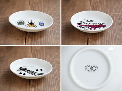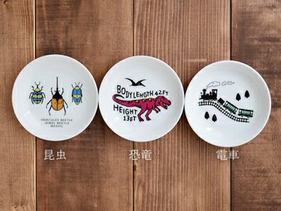 おしゃれなイラストで、お母さんお父さんも子供に使わせたくなる、こども用食器のブランド「TOTOY(トトーイ)」。 こちらの子供用食器の小皿は軽量磁器素材の食器。軽くてお子様も持ちやすく、扱いやすいのがポイントです。 醤油皿やちょっとした副菜の盛り付け、取り皿にもオススメですよ。 シンプルなプレートに映えるイラストは、「昆虫」「恐竜」「電車」の3種類。 ご飯の時間がもっと楽しく過ごせそうな子供食器です。
