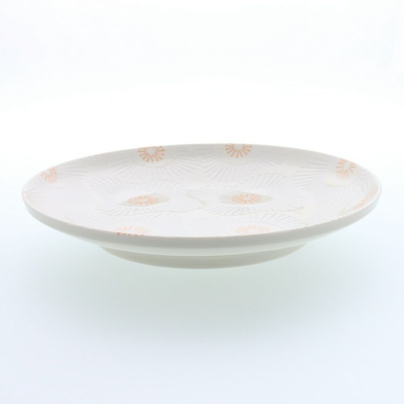 やわらかでやさしい花模様が食卓に映える大皿。 大皿はディナープレートとして、メインディッシュに最適です。 メイン料理だけでなく、パスタ皿、おかずの盛り皿、大きいお皿はワンプレート、ランチプレートに、朝昼晩使える食器です。 おもてなしから日常使いまでぴったりの一品です。