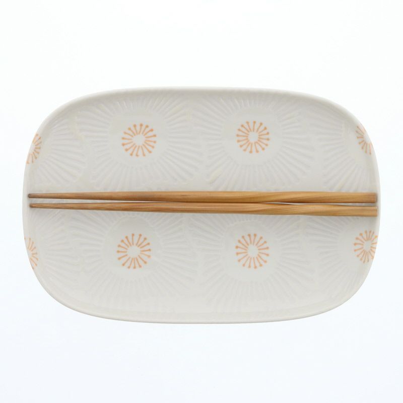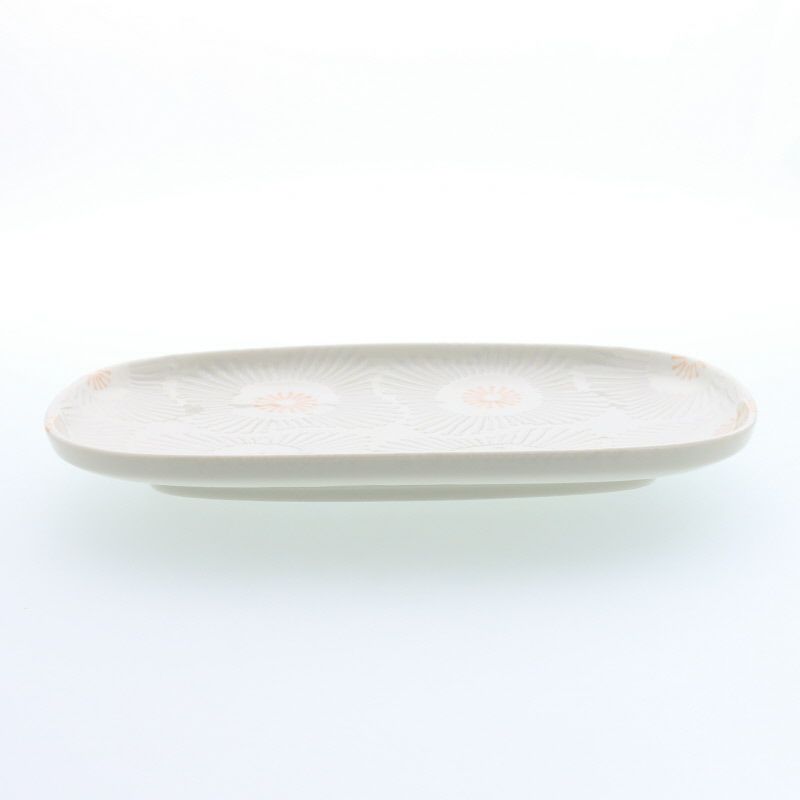 やわらかでやさしい花模様が食卓に映える変形皿。