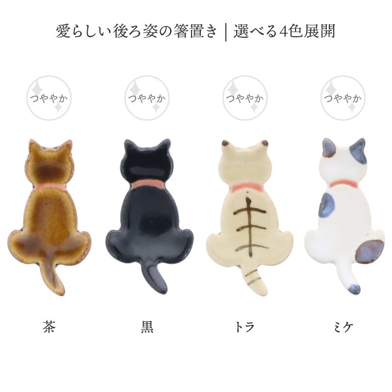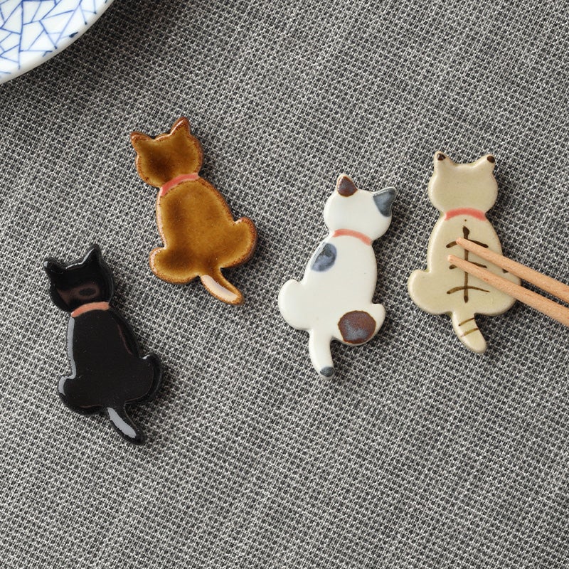 猫の後ろ姿を模した箸置きは、食卓にさりげない遊び心を添えます。陶器製で、カラーや模様を選べるため、お気に入りの猫ちゃんを見つけられます。お箸だけでなく、スプーンやフォークのカトラリーレストとしても活躍し、和洋問わず様々なシーンでお使いいただけます。温かみのあるデザインが、食事のひとときをより豊かに演出します。