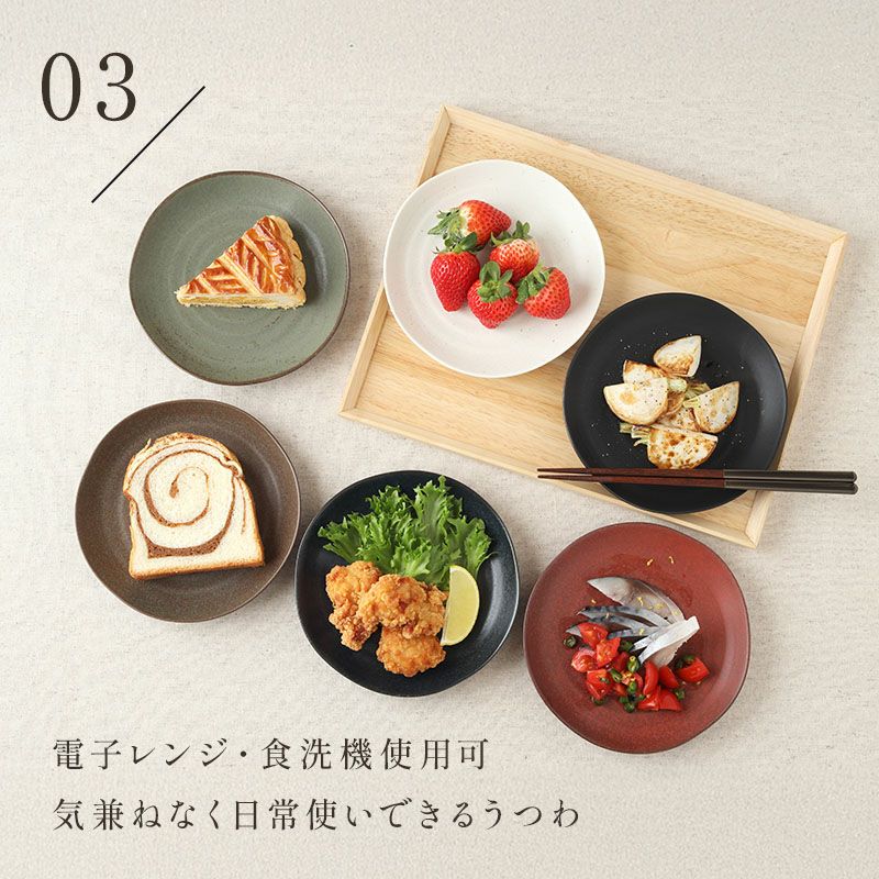 他にも取り皿として使ったり、前菜やデザート、一人分のおかずの盛り付けなど、さまざまな料理を引き立てる上品な和の中皿です。