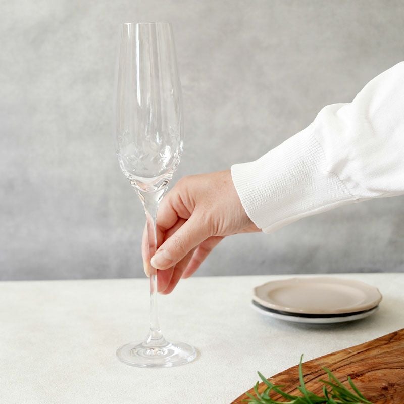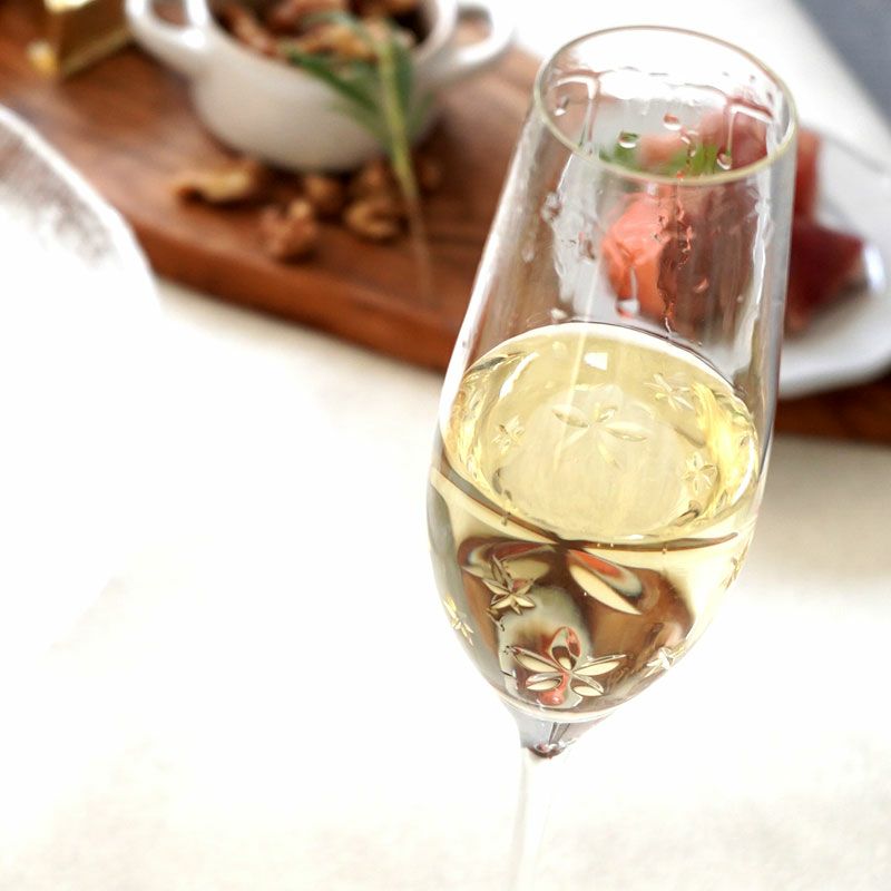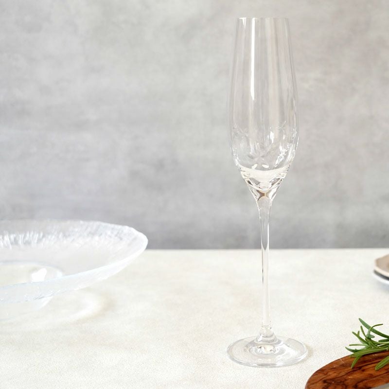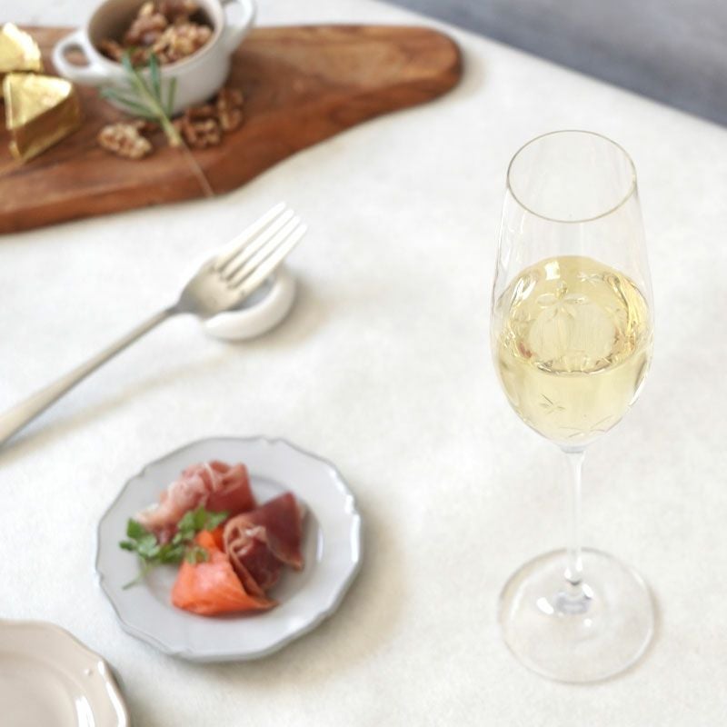 さりげない花のデザインがおしゃれなスパークリングワイン シャンパーニュにぴったりのフルートグラス シャンパングラス