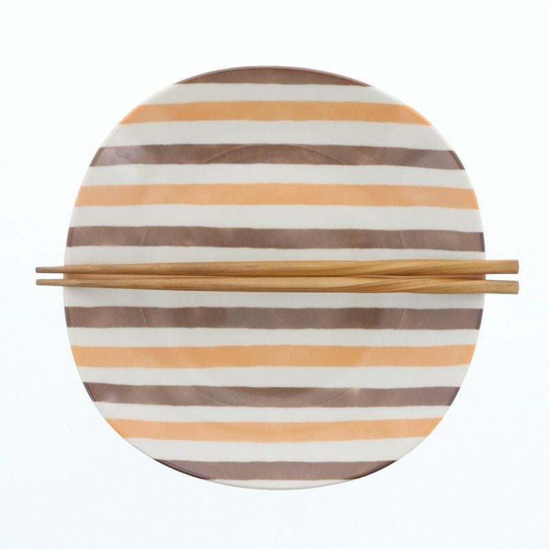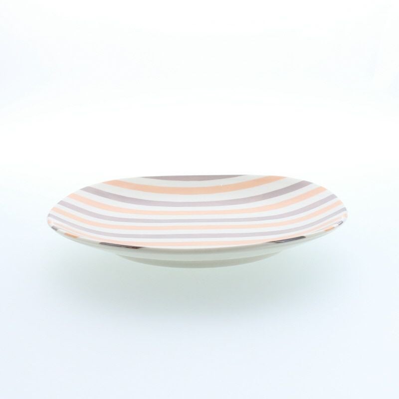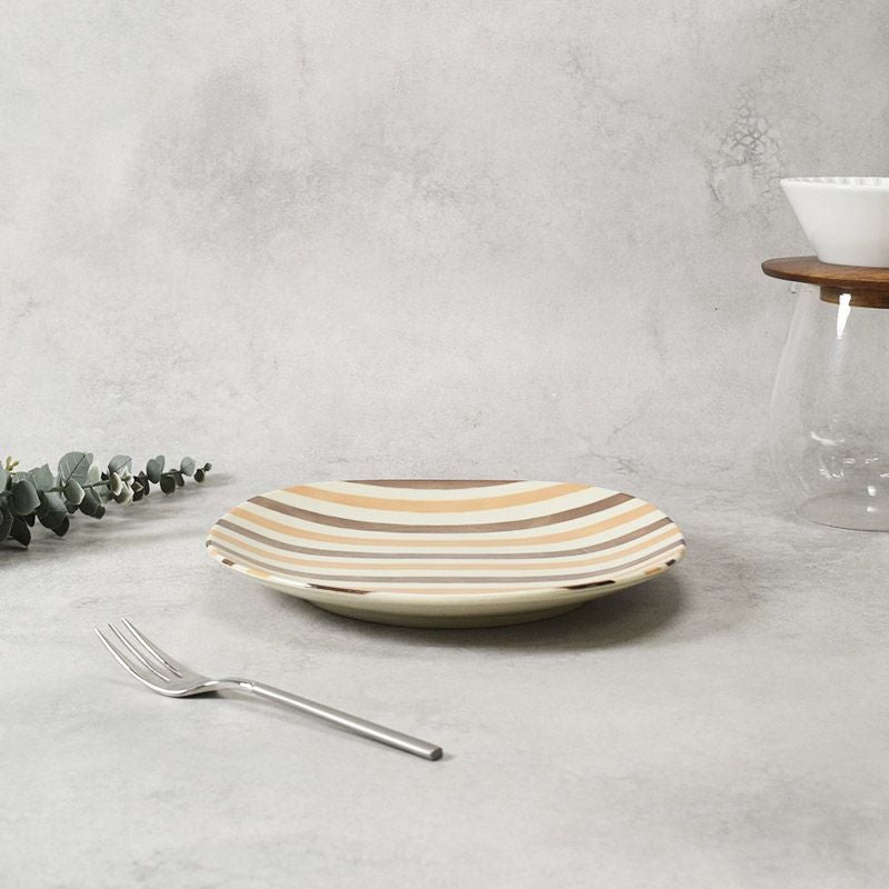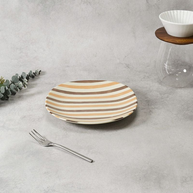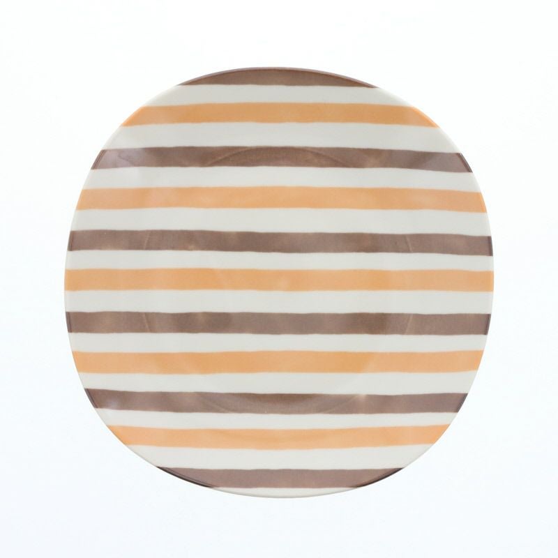 ベージュ、オレンジ、ブラウンのやわらかなストライプが目を惹く、丸みのあるスクエアプレート。