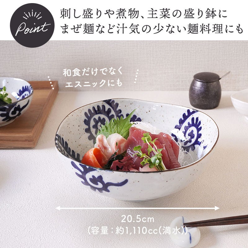 こちらの20.5cmの中鉢は、サラダや煮物の盛り鉢をはじめ、麺鉢やどんぶりとしてもおすすめ。