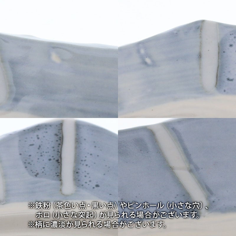 | 注意事項 | ※鉄粉(茶色い点・黒い点)やピンホール(小さな穴)、ボロ(小さな突起)が見られる場合がございます。 ※柄に濃淡が見られる場合がございます。 ※釉薬の垂れ・濃淡・剥げ・ムラ・溜まり等が見られる場合がございます。 ※お客様のお使いのモニター設定、お部屋の照明等により実際の商品と色味が異なって見える場合がございます。 ※画像に含まれる小物は使用イメージのために使用しています。 ※不明な点がございましたら、お気軽にお問い合わせ下さい。 |