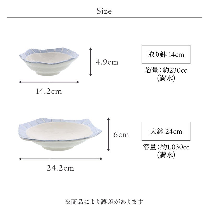 | 注意事項 | ※鉄粉(茶色い点・黒い点)やピンホール(小さな穴)、ボロ(小さな突起)が見られる場合がございます。 ※柄に濃淡が見られる場合がございます。 ※釉薬の垂れ・濃淡・剥げ・ムラ・溜まり等が見られる場合がございます。 ※お客様のお使いのモニター設定、お部屋の照明等により実際の商品と色味が異なって見える場合がございます。 ※画像に含まれる小物は使用イメージのために使用しています。 ※不明な点がございましたら、お気軽にお問い合わせ下さい。 |