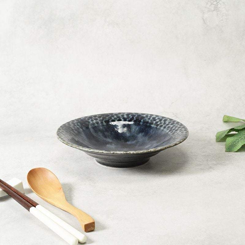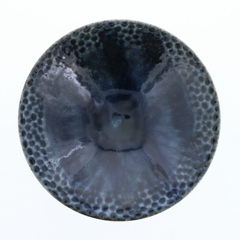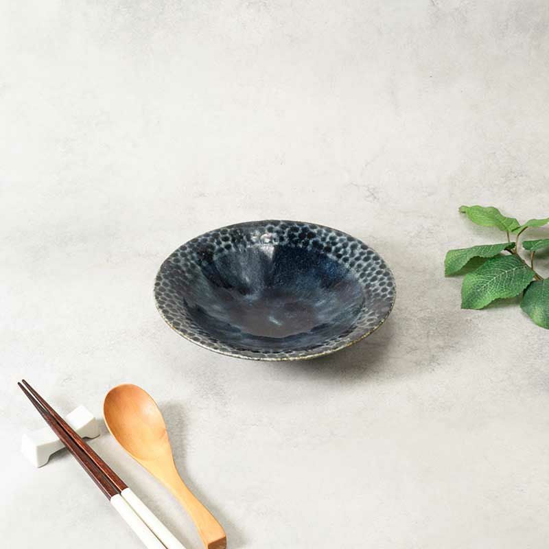 落ち着いた紺色と、縁を彩る繊細な波模様が美しい多用鉢です。